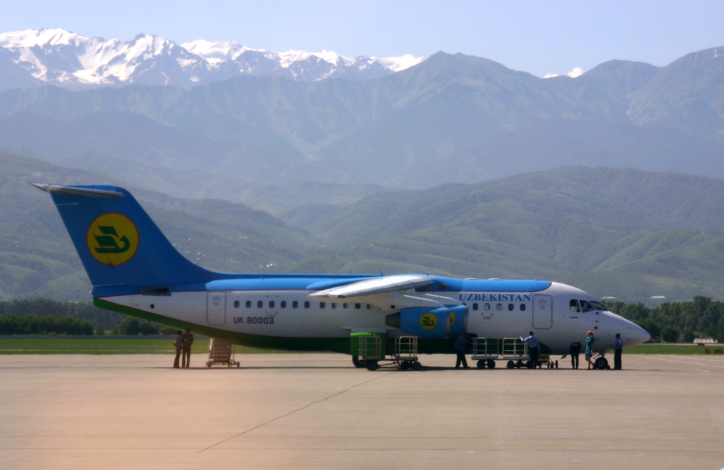 Our flight to Almaty was fairly short, lasting just 1 hour and 20 minutes. The flight, with Uzbekistan Airways, was on one of their newer Western aircraft, a British-built Avro RJ-85 (registration UK-80003), a small but nonetheless 4-engined high-wing regional airliner. Although the seats were quite roomy and Andy had good views from the window, three negatives of the flight were (a) the dry plain cheese rolls served as food, (b) no vomit bags provided, and (c) I left my Central Asia guidebook in the seat pocket when I alighted. I guess I must have been more tired than I thought, or perhaps I just distracted by all the gleaming Tupolevs and Antonovs standing on the tarmac at Almaty Airport, framed by a magnificent backdrop of snow-capped peaks. Anyway, subsequent phone calls failed to locate the book – frustrating but probably not worth claiming on travel insurance! As it turned out, I was able to borrow a very weatherbeaten copy later in the day – on pain of death to return it in a couple of weeks as I pass through Tashkent.