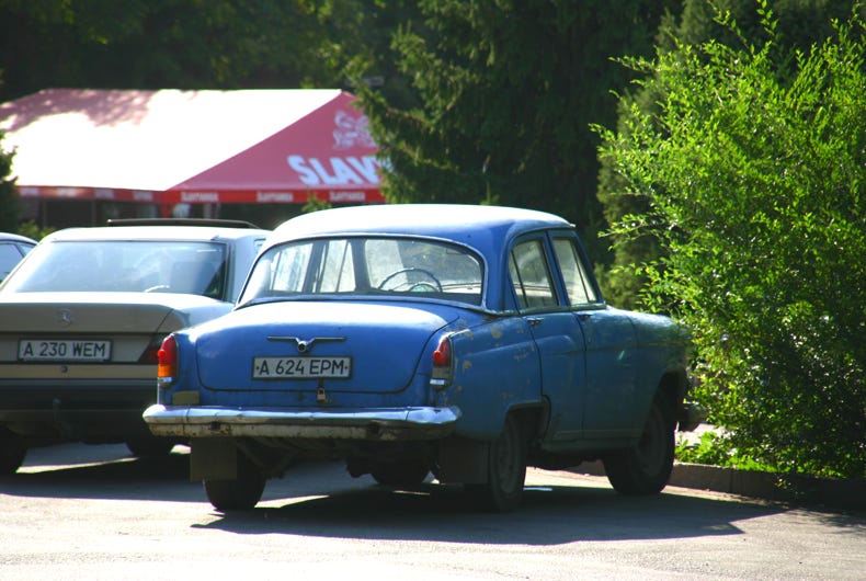 We went first of all to our hotel, the Kazzhol, which was basic and adequate with quite a central location. Food prices were about double those at the Rovshan in Tashkent, but still extremely reasonable compared with most other countries, and presumably just a reflection of Kazakhstan's higher level of economic progress compared with Uzbekistan – there are far fewer Volgas, Ladas and Zhigulis here compared with Tashkent, for example, and considerably more evidence of new building projects. (It is interesting that the proportion of Volgas on the road can be used as an indicator of economic development in this part of the world – "the Volga factor"). How many people, or families, control Kazakhstan's economic development, and hence destiny, may be an interesting question to ask, however. There is also more evidence in Almaty of a strong Russian presence than we saw in Tashkent, and as Russians provide much of the higher level employment skills in the Central Asian economies, this may help to explain Kazakhstan's relatively vibrant economy compared with that of Uzbekistan.
