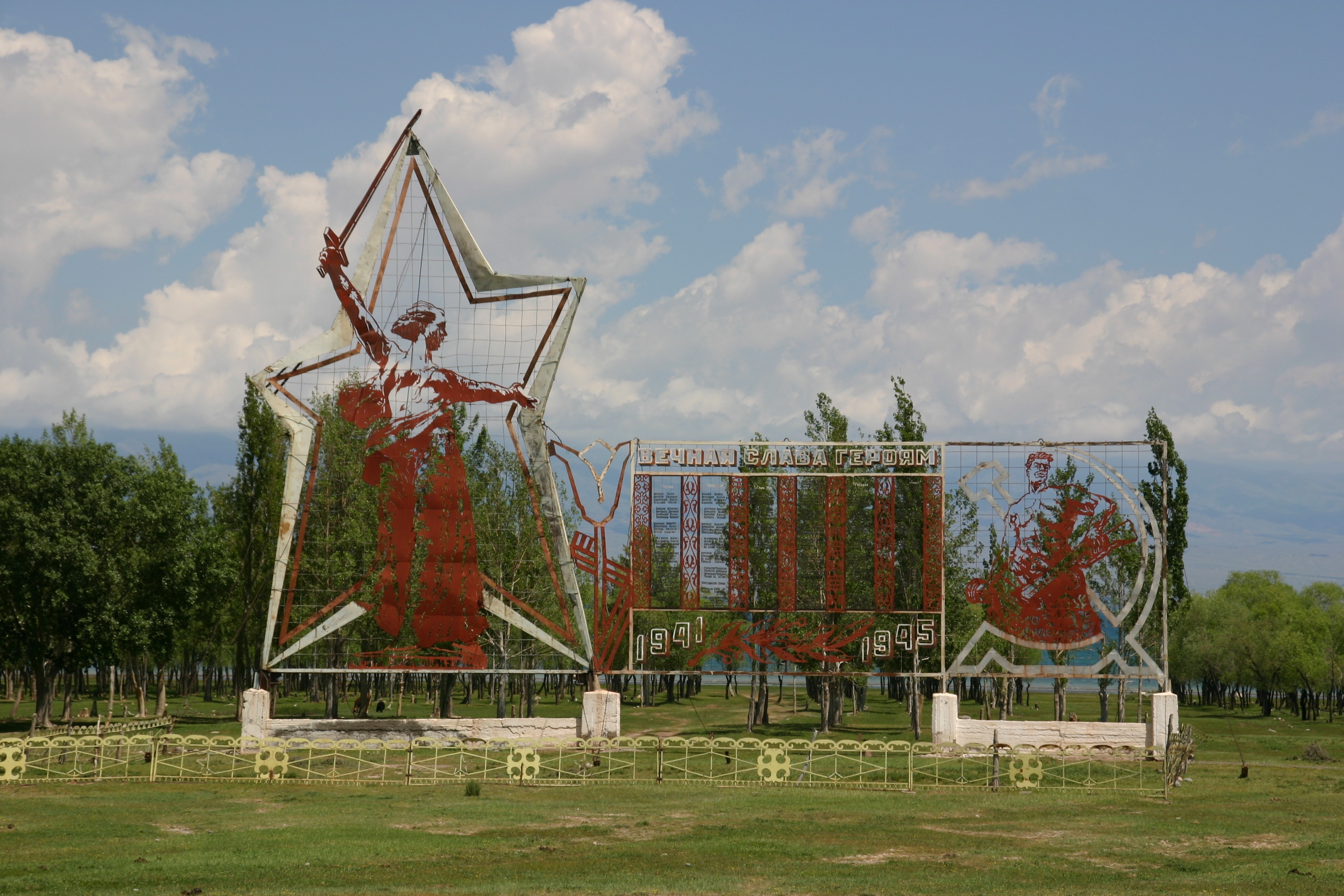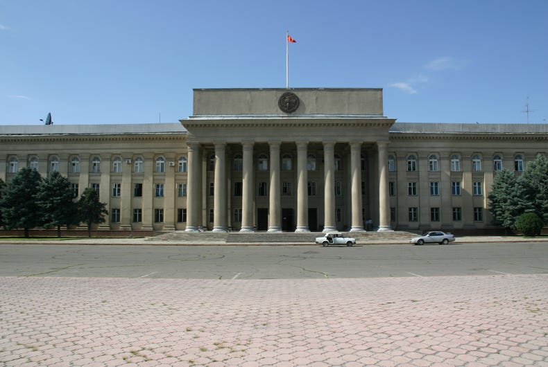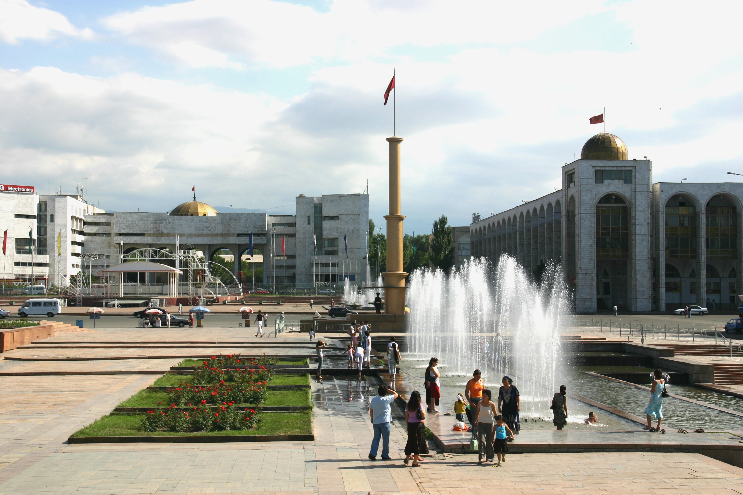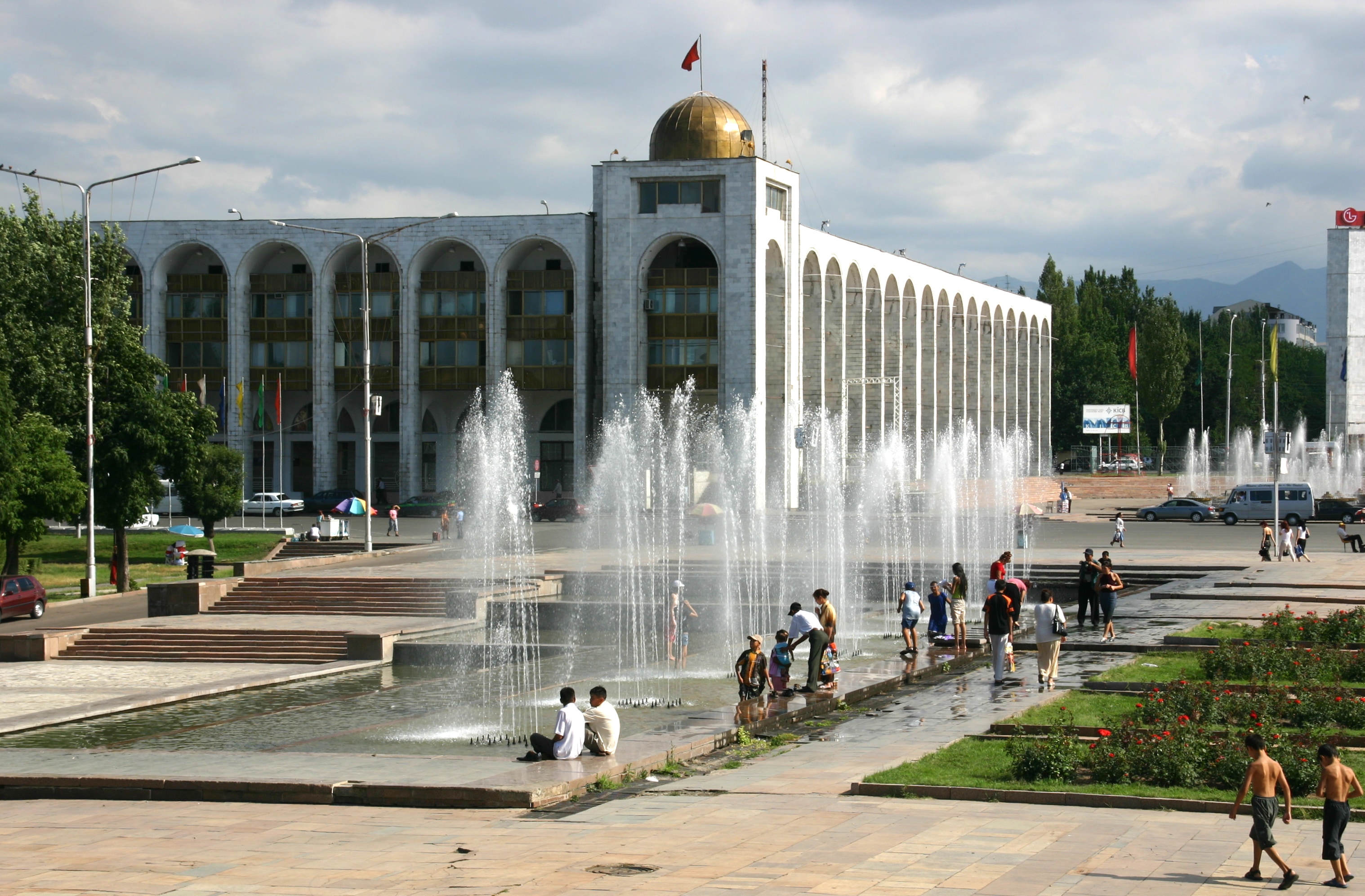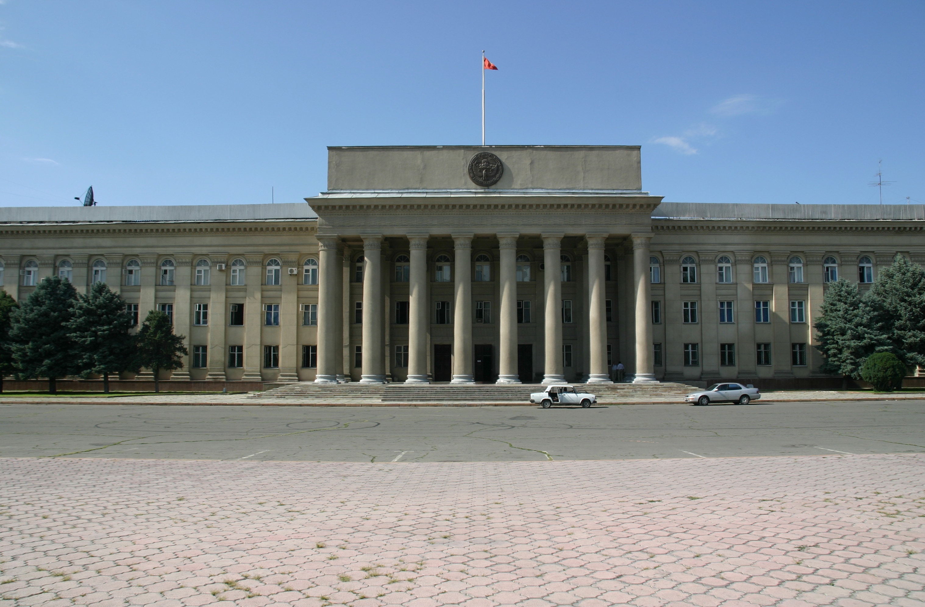 We arrived in Bishkek at about 4:00 pm, and proceeded first to our hotel, the Silk Road Lodge, perhaps the most comfortable night of our trip. The aim was to check in and proceed immediately to the State Historical Museum, but as our rooms were not yet ready, we went immediately to Ala-Too Square, which marks the city centre. The square used to be dominated by a large statue of Lenin, but this was recently replaced by a statue of Freedom. Unlike many other ex-Soviet cities, however, Lenin was not removed in Bishkek, just relocated, in this case to a smaller but nonetheless significant square one block away. After walking through Ala-Too Square and seeing the Freedom Statue and its associated fountains, Andy and I went around the back of the State Historical Museum to see the statue of Lenin before then returning to go inside the Museum.