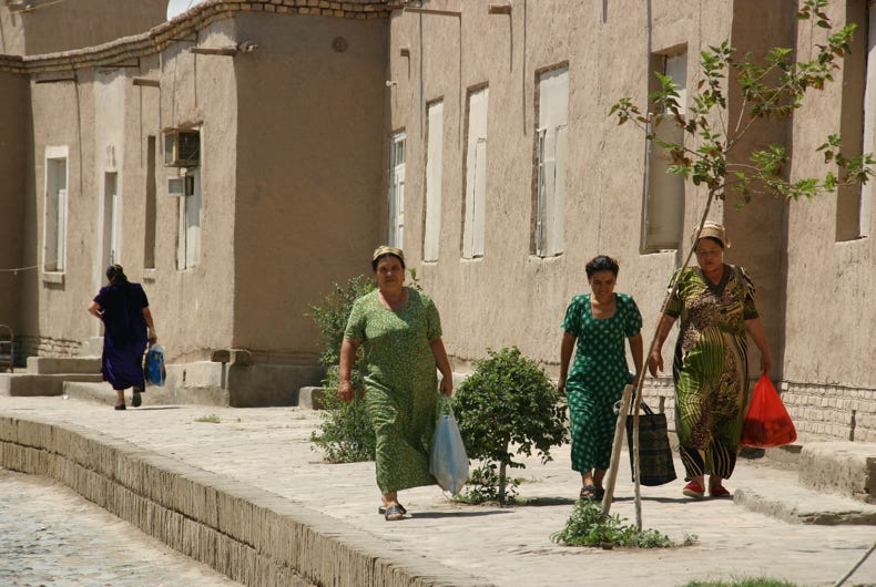 After dinner, we enjoyed a slow stroll back to the hotel in the cool evening, soaking up the atmosphere of this wonderfully preserved ancient city. We made just one stop, at a pottery shop, where we bought a lovely hand-painted Uzbeck plate plus some small gifts.