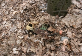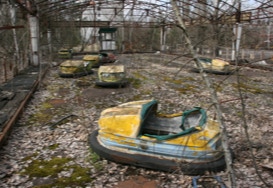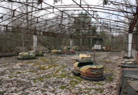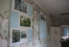 Perhaps the most poignant sight for me was at an abandoned kindergarten at Kopachi, a small abandoned town two kilometres south of the nuclear power plant. Many of the houses in Kopachi were bulldozed and buried to stop the radiation escaping into the atmosphere, although geographers now warn that this poses a radiation hazard for the area’s groundwater supplies that feed the nearby river. However, the kindergarten remains standing, and as I entered the grounds, past the yellow and red radiation warning sign, I looked down at the pile of accumulated leaves. I could make out the rusting remains of some metal toy trucks, and I instantly imagined the laughter that they once brought to the little children in the kindergarten who were, at that time in 1986, exactly the same ages as some of my own children. And then, as I looked more closely, I could see, looking back up at me, the face of a little girl’s abandoned doll - a speechless, , contaminated, radioactive witness to 25 years of loneliness.