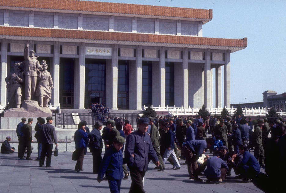 The Chairman Mao Mausoleum is much more impressive in reality than it appears in photographs. In photographs, it looks small, but the closer you get the real thing, the larger and larger it looms. Everything about the building is larger than life, making the visitor feel very small and insignificant by comparison. There is a religious, cathedral-like atmosphere as everyone silently shuffles through in a two-by-two queue without even a whisper. Naturally, no photographs are allowed inside as taking photos would disrupt both the flow of the procession and the solemnity. Mao’s body is preserved in a crystal case. I thought he looked quite small and somewhat shrivelled with a bright pinkish vinyl complexion.