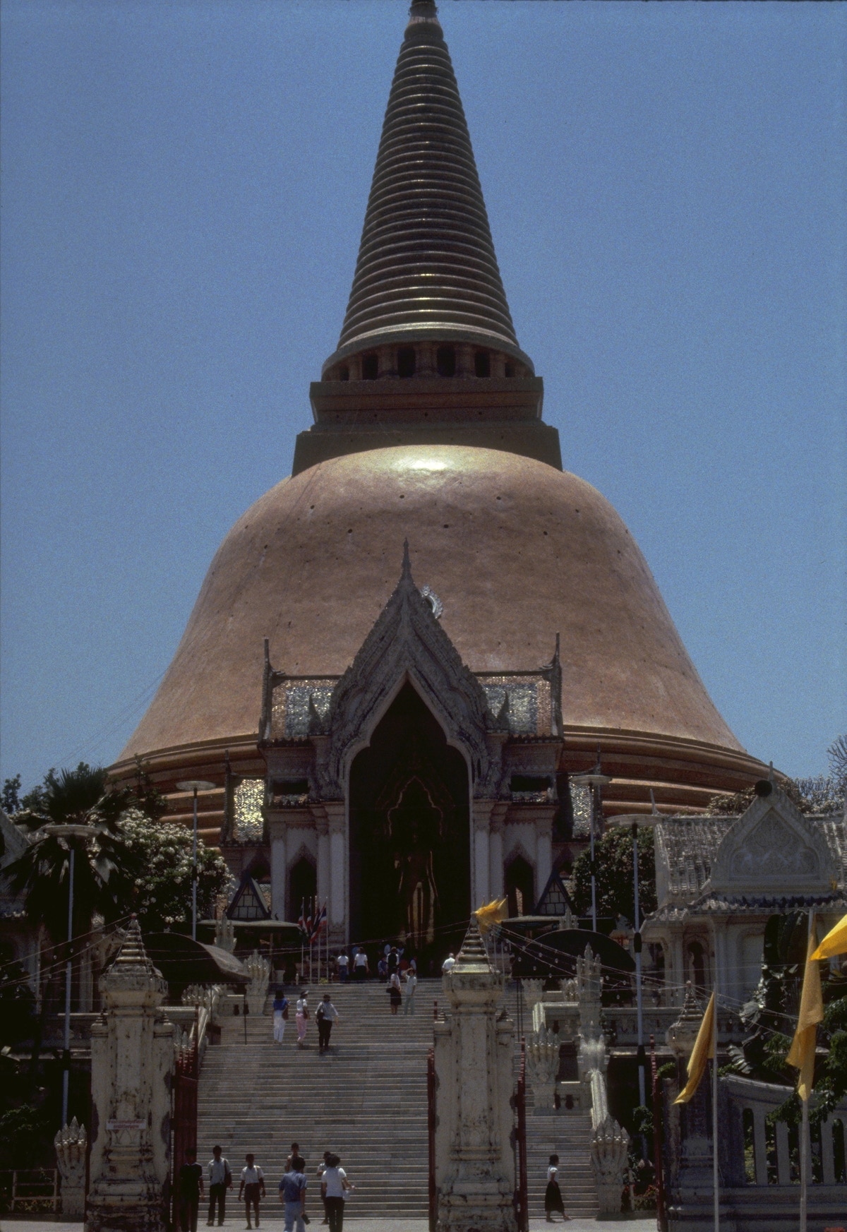 Superimposed on this pattern, the street stalls and the shanty towns further complicate the situation. Bangkok is very heavily polluted with exhaust fumes (emission controls don’t seem to be a consideration here). Then there’s the noise (from hotted-up trucks, taxis and cars) and the dust – it’s the end of the dry season and everything looks covered with the grey dust from the black deltaic soil.