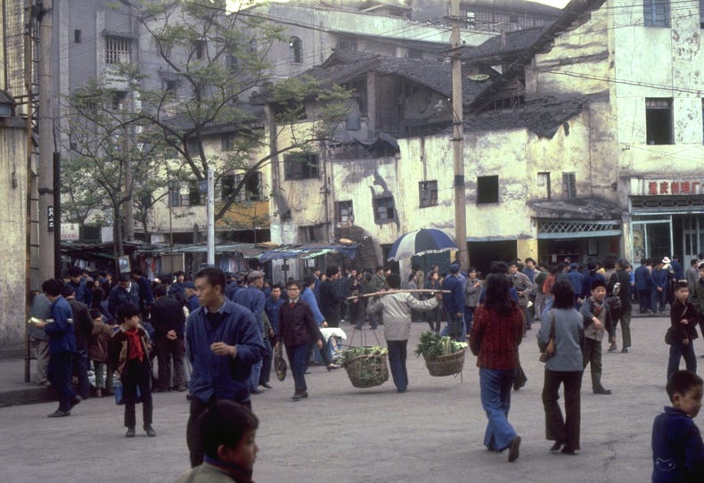 The citizens of Chungking appear more rural than those of Kunming, with a strong peasant mentality. Their faces are full of character, particularly the older ones, of whom there are many. Everywhere we went today, a crowd gathered around just to stare at us, often open-mouthed. At first it quite off-putting, but as soon as we learned to smile or say “ni hao”, we saw their faces light up and they would wave enthusiastically. The staring is obviously simple curiosity.