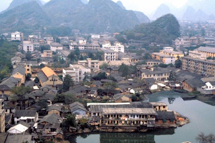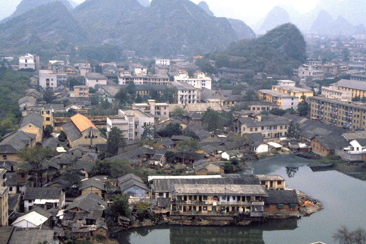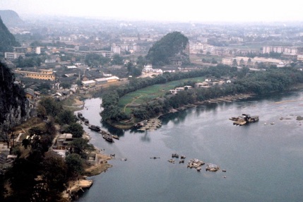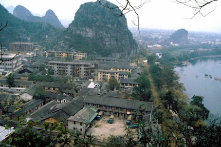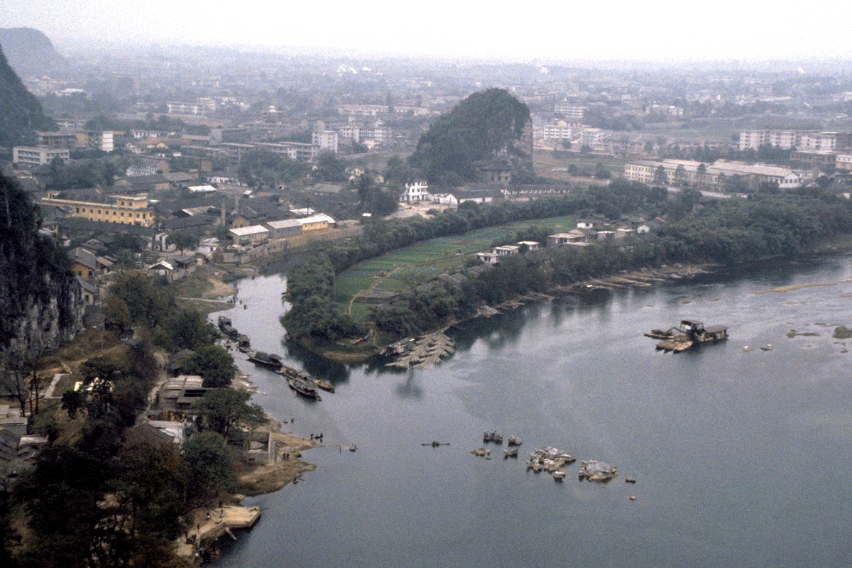 We were woken this morning at 5:15am, with bags out by 5:30am. We left the hotel at 5:50am for the airport where we had breakfast, and then caught the 7:30am CAAC flight in a British-made Hawker Siddeley Trident to Guilin. Guilin is famous for the multitude of steep limestone peaks which rise precipitously from the surrounding fields, lakes and rivers. We had a magnificent, though misty, view of the karst landscape as the plane approached the airport.