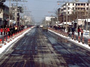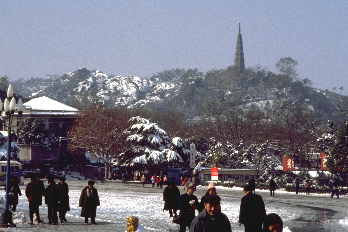 We began the morning by touring a silk and brocade weaving factory, the Dushinjeng works near West Lake. We saw the design of the traditional patterns which are now back in favour following the political themes that were mandatory during the Cultural Revolution. During the tour of the factory, we also noticed the blackboards where workers can put up any messages which they deem important to the other workers (usually political inspirations) and the work points board which showed workers’ progress in earning bonuses (again, the result of the recent economic reforms). I had an interesting discussion with our guide who was surprised to learn that Australian factories also have “propaganda slogans” on display, such as the one I saw in Mitsubishi’s Adelaide factory last August: “Better cars mean more jobs”. With unemployment well disguised in China, he was fascinated by the slogan to the extent of memorising it, writing it down and checking it with me several times.