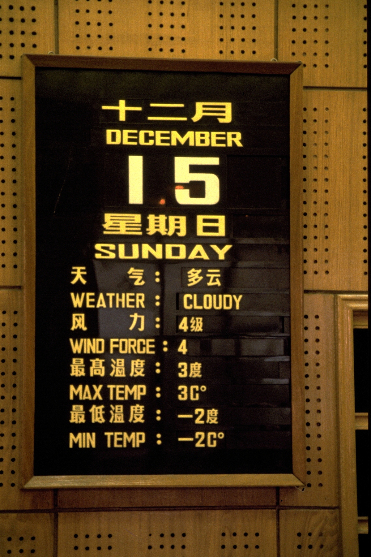 It was –2 degrees Celsius when we landed in Beijing, but with no wind and clear blue skies it was very pleasant, not seeming cold at all. In fact, it was so dry that all the snow had evaporated, and we did not see any more snow during our stay in China even though the temperatures were a regular –12 minimum to +2 degrees maximum each day.