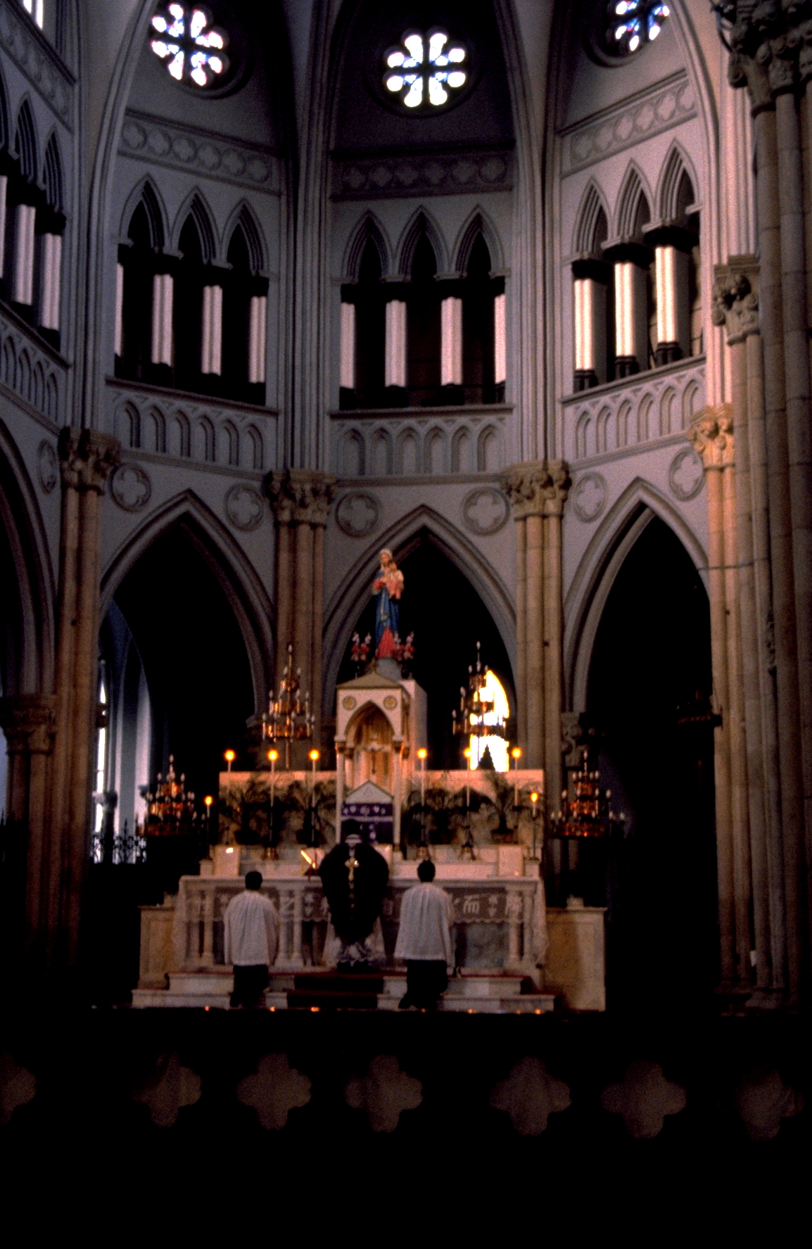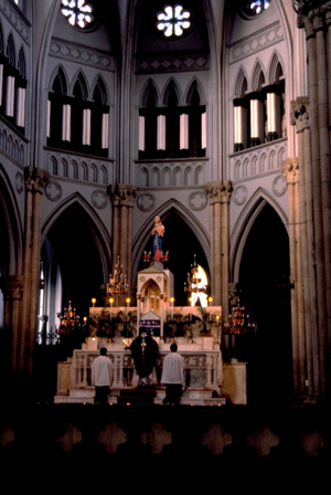 I had expected most of the congregation to consist of old ladies, and indeed one of the reasons I thought it would be good to go to the service was so that the old parishioners could see that in other parts of the world young people still believed in religion. According to Fr Berchmans, about 25% of the congregation of 1500 people are young people, although at the service we attended the figure would have been less than this. One cannot help but admire people whose faith is so strong as to continue going to a non-participatory mass in Latin which they cannot hear for several decades under active persecution from the government!