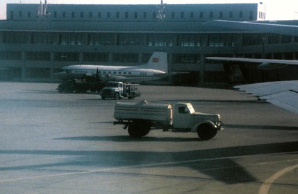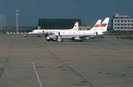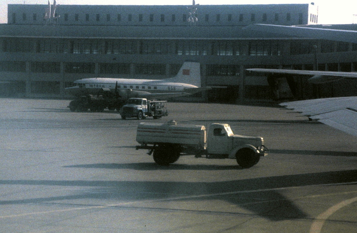 Following the mass and our mixing with the local congregation, we went to Shanghai’s Hongqiao airport via our hotel, and caught a CAAC Boeing 707 (registration B-2408) flight to Peking (nowadays more commonly called Beijing). CAAC do not serve meals in flight, so we collected a boxed sandwich lunch on the way to the airport.
