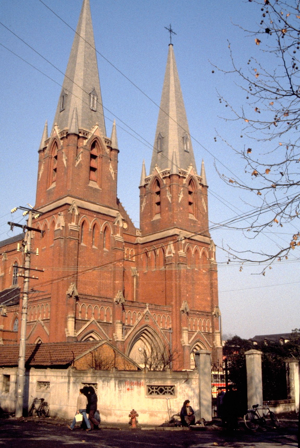 The cathedral was badly destroyed during the Cultural Revolution, but it has since been renovated by the government. The two large spires were destroyed, but they have now been replaced in plastic! The priest, Father Shen Bao-zhi Berchmans, who was General Secretary of the Shanghai Catholic Diocese, was delighted to see us, showing us around and presenting each of us with a very interesting set of postcards of the church and a Chinese style Christmas card.