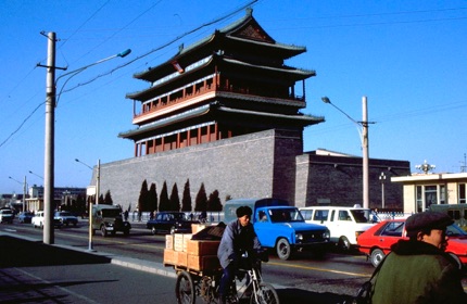 Our strolling took us to Chongwenmen, so to experience another aspect of the underground city we took a short ride on Beijing’s new underground railway to Tian An Men Square (10 fen, about 4 cents for a ride anywhere on the system). From there we walked along Qianmen Street, past the old South Gate of the Imperial City to the hotel where our guide said we would all be having lunch. Unfortunately he didn’t tell me where in the hotel we were eating, and so began a 20 minute search for our group and what was left of a cold lunch.