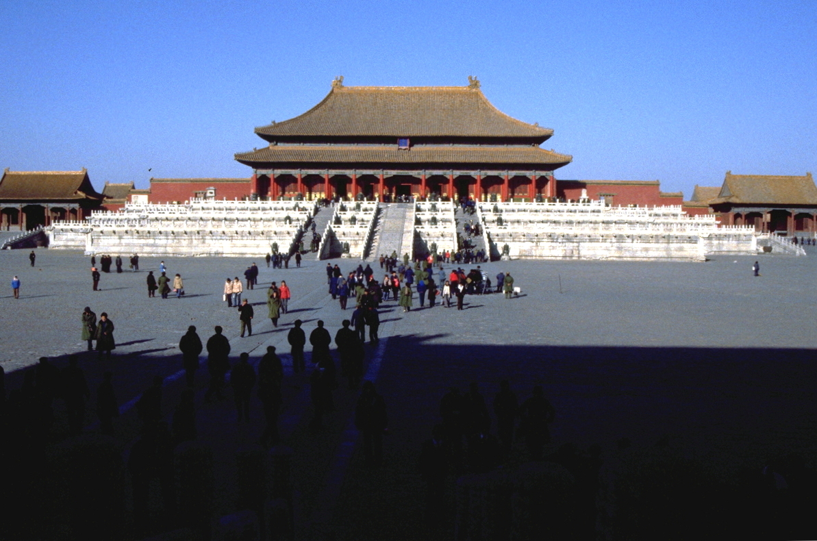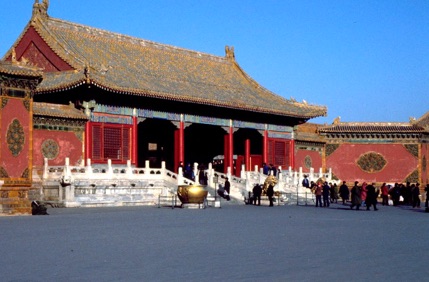 After lunch, we toured the Forbidden City, which until the 1911 revolution was the palace of the emperors of China. It is a huge complex of over 9,000 rooms, all with bright red walls and golden ceramic roofs contrasting with the greyness and drabness of Beijing in general. It marks the centre of the Imperial City of Peking, and the Chinese used to believe it was thus the centre of the universe, with the central north-south pathway (along which only the emperor could walk upon pain of death) dividing the eastern and western halves of the universe. The names of the buildings alone evoke a sense of majesty: Hall of Supreme Harmony, Palace of Heavenly Purity, Hall of Vigorous Fertility, Palace of Earthly Tranquility, Thousand Autumns Pavilion, Gate of Divine Military Genius, Hall of Mental Cultivation, Palace of Eternal Spring, and so on. Unlike its Imperial times, the Forbidden City is now freely open to the public as “The Palace Museum”. The “new Forbidden City”, Zhongnanhai, where China’s current leaders live, is next door and not nearly so accessible.