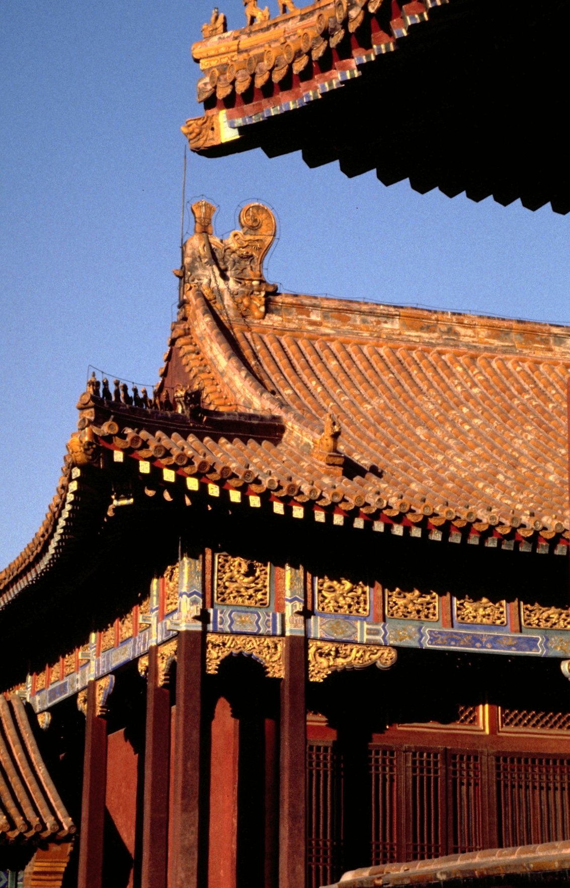 After returning to the earth’s surface, we strolled along several of the small, narrow hutongs which wind through the fast disappearing grey courtyard homes of old Beijing. When one travels along Beijing’s main roads, tall blocks of units are seen almost everywhere, but past this veneer the centres of most of the large blocks of land behind the buildings that line streets are still criss-crossed by these very old small homes. Many of the homes are so old that quite substantial plants are growing from the ceramic tiles on their roofs.