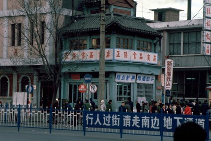 After some strolling around. I walked via Tian An Men Square to Wangfujing Dajie, one of Beijing’s main shopping streets. I had several addresses of bookstores, travel centres and publication offices which might have brochures or small booklets on Beijing. However, despite much walking and questioning, I was only able to locate material on every other city in China. After a look around the Beijing Hotel, including a partially successful attempt to get a view of the Forbidden City from the 17th floor, I returned to our hotel by taxi for lunch.