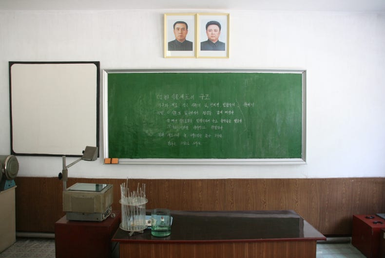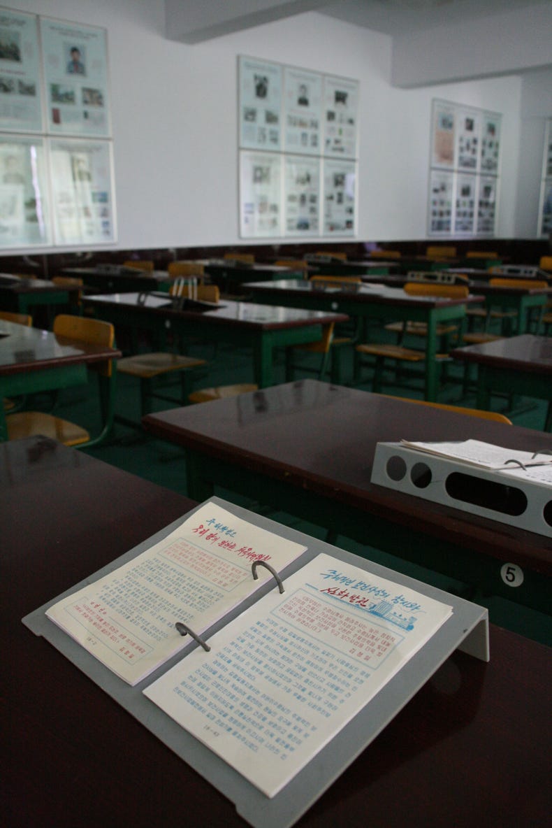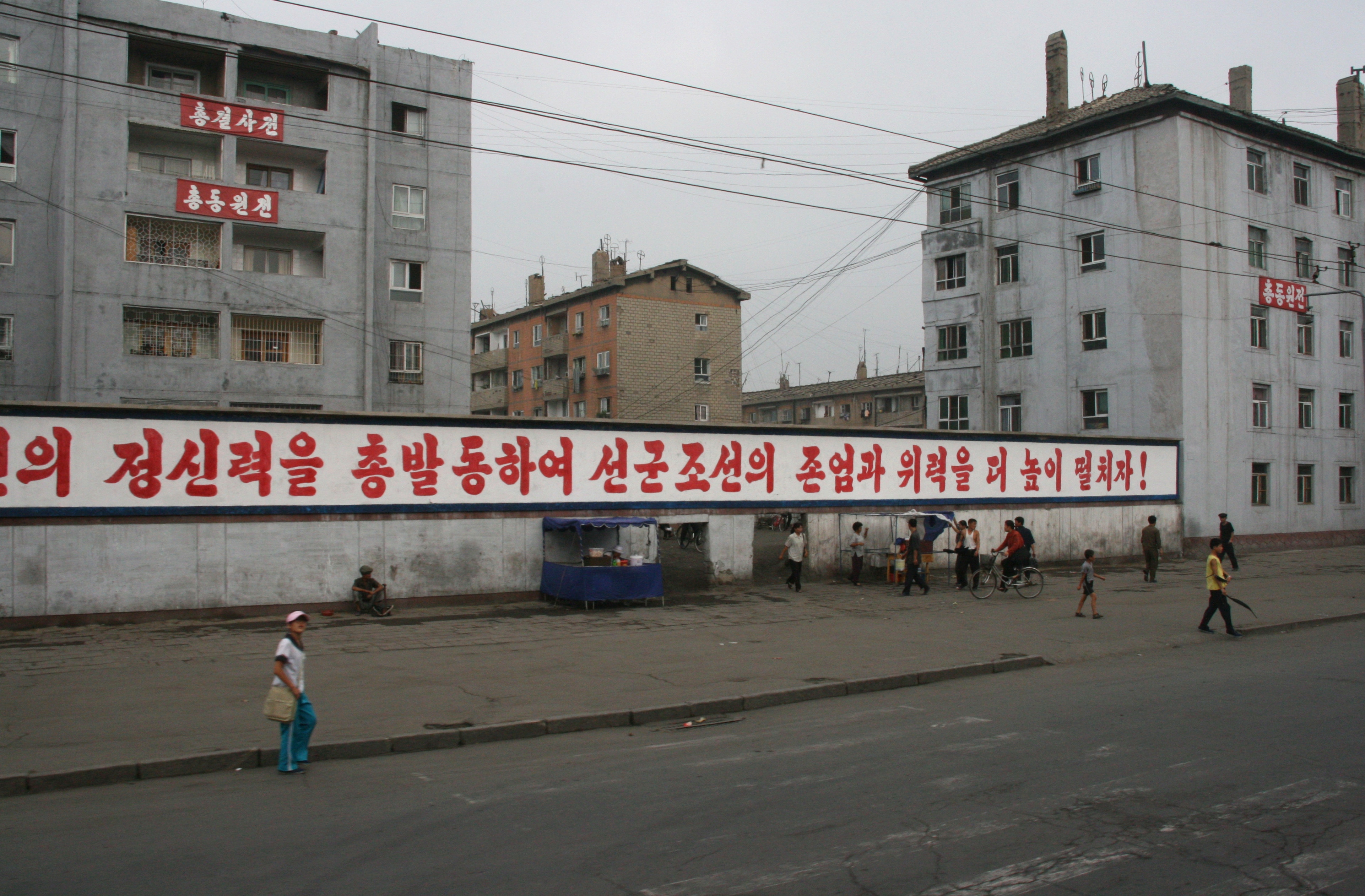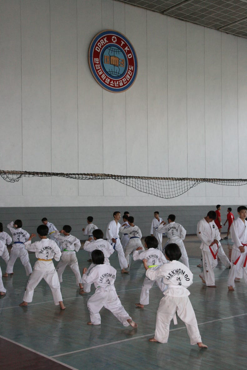 After the lesson, we moved to the school’s auditorium for a concert. Students from June 9th Secondary School (almost all girls) performed some beautiful songs glorifying the nations leadership, after which they invited our students to join them in a reunification dance. To thank our hosts, our students then provided a series of performances for the local students - a South Asian dance, a demonstration of tae kwon-do, a performance of Abba’s ‘Mama Mia’, Chinese rope skipping, a Latin American dance, an Albanian communist song, a Japanese fishing dance, a French song, and a Chinese fan dance. Our students’ performances were excellent given the severe difficulties faced in sound quality, and the setting was great - the school’s auditorium stage, all under the big red and white Korean lettering that translated as “Arm ourselves with the revolutionary ideas of the President Kim Il Sung!”.