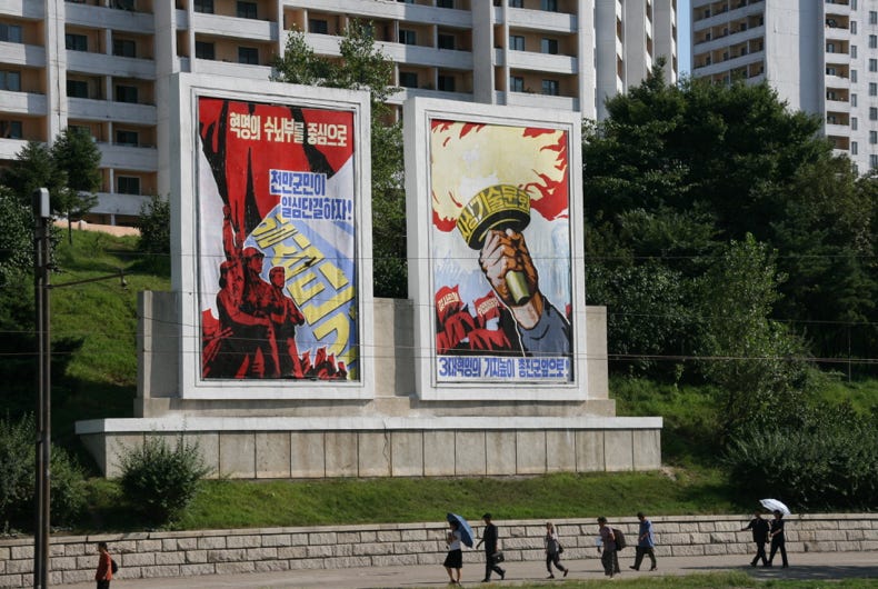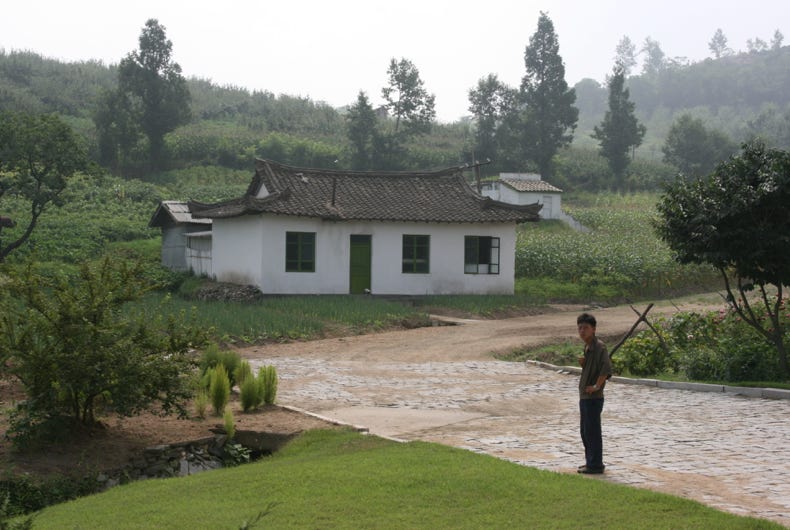 There are two types of farm in North Korea. State farms operate such that the farmers are salaried employees of the government. Co-operative farms, on the other hand, allocate plots of land to working teams of 15 to 30 people who are paid according to the amount of work they contribute. Most North Korean farms are co-operative, which is perhaps fortunate as they are more productive than the state farms.