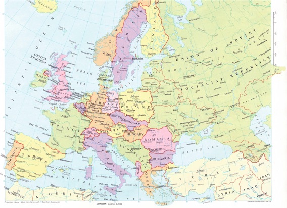 CLICK THE MAP AT THE RIGHT TO SEE A LARGE MAP OF EUROPE AS IT WAS WHEN WE TRAVELLED.