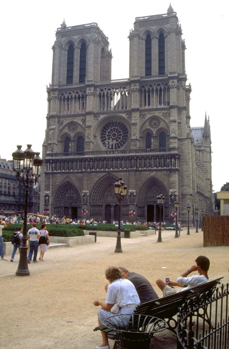 We then proceeded to Notre Dame cathedral, where we admired the beautiful windows and magnificent Gothic architecture, and then to the Eiffel Tower.  We decided not to go up the Eiffel Tower because the weather was misty and the children were getting tired, resolving instead that when we return to Paris at the end of the trip, we would do so at that time.