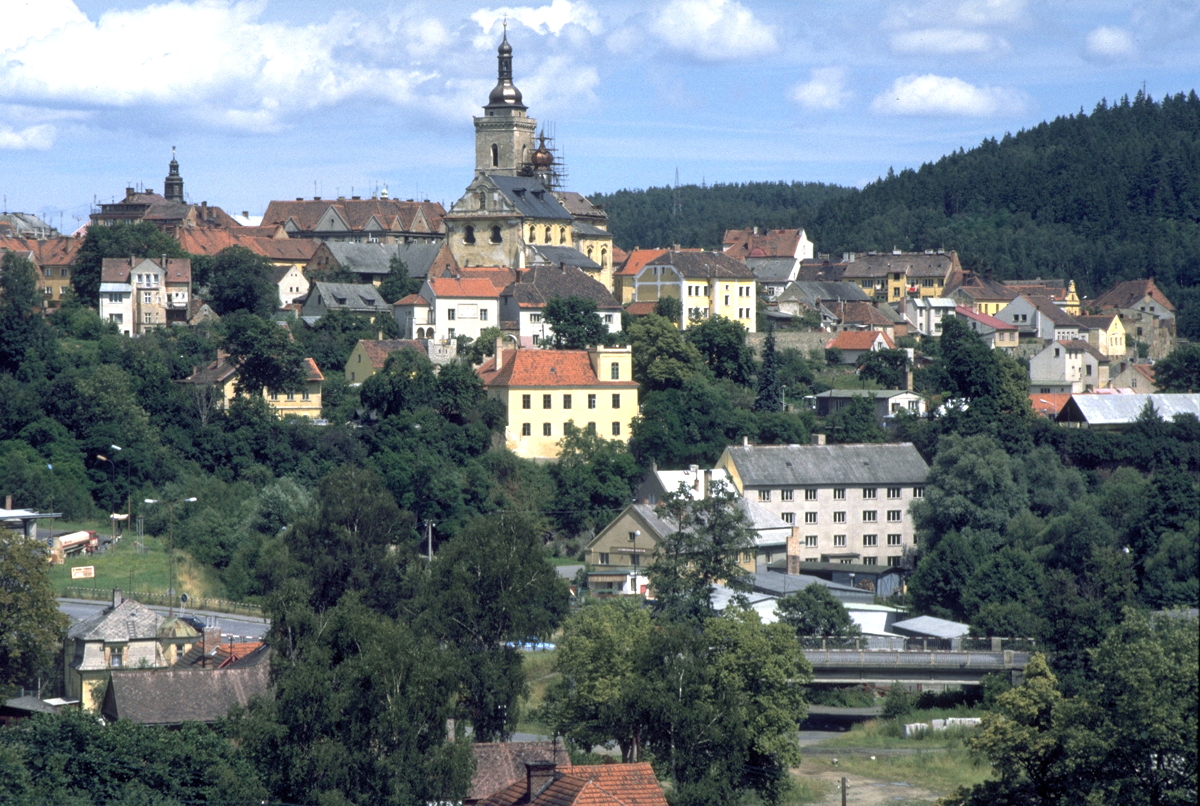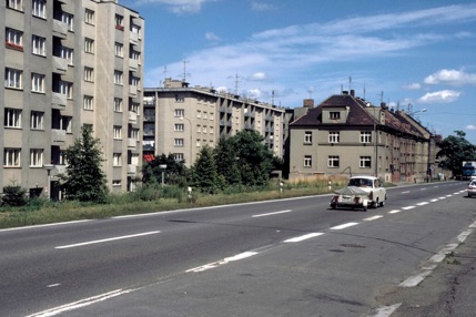 As soon as we crossed the border, it was immediately evident that the scenery was quite different from West Germany, with flatter land and towns with older, more run-down appearances.  We made three short photo stops to record our initial impressions of the differences behind the Iron Curtain in Stříbro, Pilsen (on the 605 highway coming into the city from the west) and Beroun.