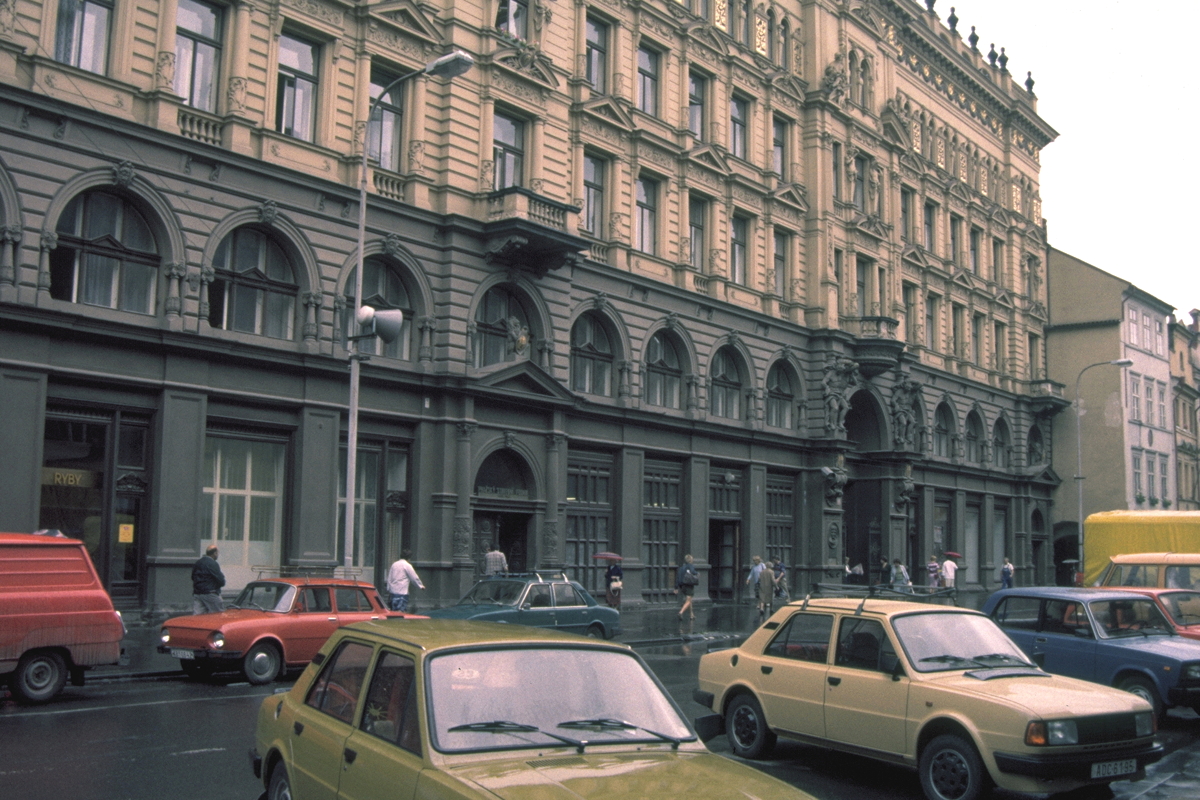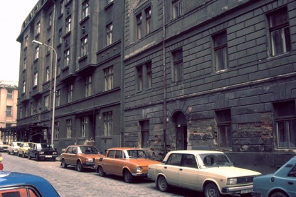 We arrived in Prague mid-afternoon, and our first stop had to be Pragotours, the local subsidiary of Čedok, the government monopoly that controls all travel in Czechoslovakia.  Because the Youth Hostels Association (YHA) has no presence in Czechoslovakia, I had arranged for us to stay with a family (any family; we couldn’t choose) in a private (but obviously government-approved) home.  However, as was the normal practice, I hadn’t been notified of the name or address of “our” flat, so I needed to visit the Pragotours office to find out which home had been allocated to us and where it was located.