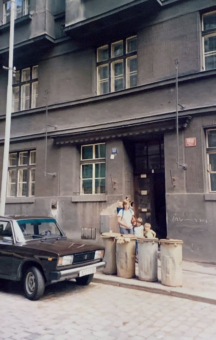 This process took about an hour and a quarter, during which time Di waited with the three children in the (increasingly hot) car.  Eventually I learned that we were to stay in a flat owned by a Mr Blaha, so I returned to the car and navigated our way to the street where his flat was located, Podskalská 22, Nové Město (New Town).