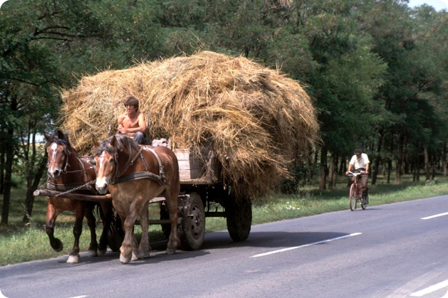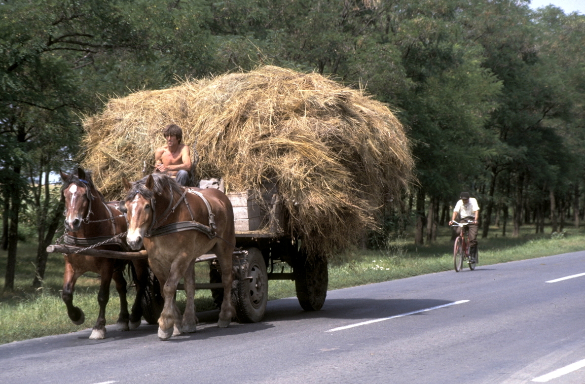 As we approached Gyula, there was a curious mix of age-old horse-and-cart transport of harvested wheat with active large-scale, capital-intensive harvesting of wheat with huge combine harvesters.  It was beautifully lit in the afternoon sun; very photogenic (if you like mechanised wheat harvesting, that is).