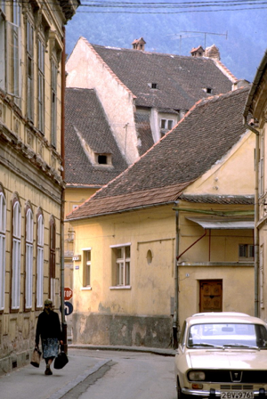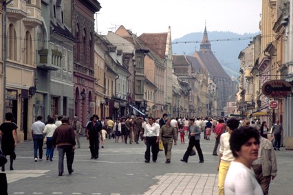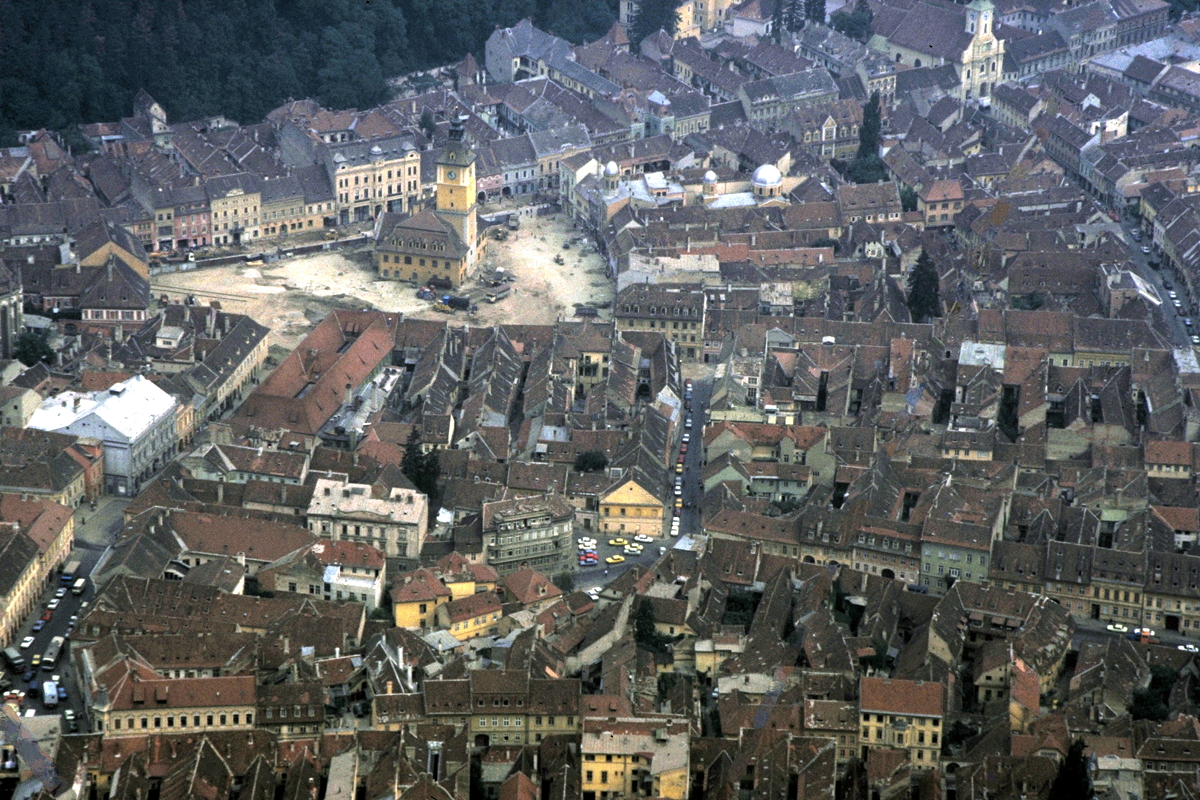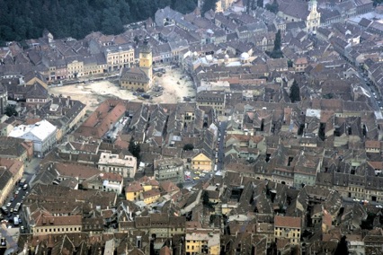 Following breakfast, we went for another walk through the old town near the hotel, making our way through the beautiful Piaƫa Sfatului (which was under extensive renovation, being re-paved) to the historic Black Church, built between 1384 and 1477. From there it was just a short walk to the Telecabina Tâmpa cable car station, which rises from 640m to 960m to give superb views across the old town. More accurately, the views are apparently beautiful on a clear day, but we were somewhat underwhelmed by the experience. There was nowhere to see the city from the summit at Mount Tâmpa. Furthermore, the views from the cable car on ascent and descent were partly obscured by a combination of misty air, dirty windows and the thick cables that were performing the important task of carrying our gondola.