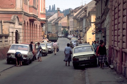 Returning to the hotel, we spend some time writing postcards, and using up our remaining “non-petrol” coupons by buying some drinks. I had heard the expression “flavour of the month” many times before, but in Romania we found that it’s literally true. Up until last night, the only soft drink available was cherry-cola, but overnight all the stocks of that flavour had disappeared and every shop and street stall had started selling August’s new flavour – citron (a lemon flavour). And the good news is that Phillip would drink it (after having all the bubbles blown away first, of course). Di and I were very grateful we had been here on the change of the month, because we believe the new flavour prevented our little boy succumbing to severe dehydration.