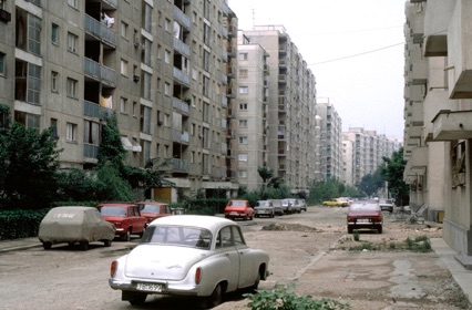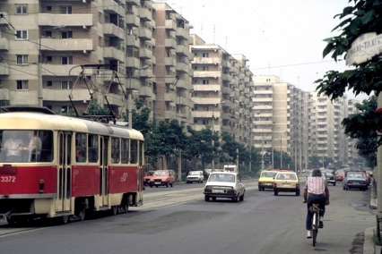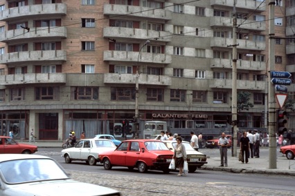 Around mid-morning we set off for the drive south towards Bulgaria via Bucharest, Romania’s capital city. The scenery on this drive was often pretty but spoilt by an impressive number (in one sense) of smoke-spewing factories. We drove into the metropolitan area of Bucharest along Highway 1 and headed for the Arch of Triumph (Arcul de Triumf), closely modelled on the Arc de Triomphe in Paris. Of course, it was not possible to stop or park nearby, so we turned towards the right and headed south-west along Strada Turda, stopping about a kilometre further on near the corner of Bulevardul Ion Mihalache to have our small lunch that we had brought with us. This gave me a rare chance to sneak some photos of Bucharest, avoiding the sinister looking police officers that seemed to be standing on nearly every corner, along both main roads and even along a nearby smaller street in a terrible state of disrepair, Strada Cluj.