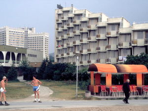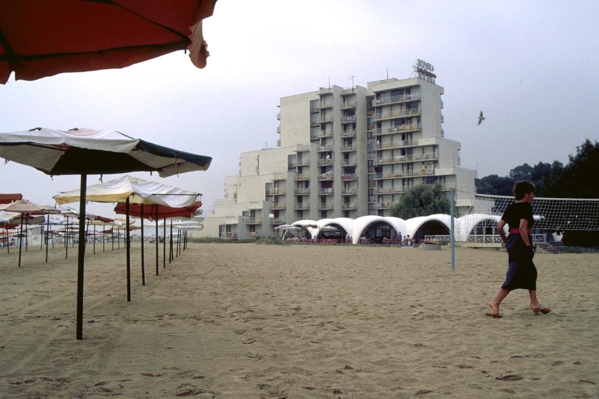 With that news and following the suggestion of the tourism office staff, we drove 14 kilometres south to Zlatni Pyasatsi (Golden Sands), another beach resort with an accommodation office.  The answer there was the same as Albena, so we drove another 16 kilometres south to Varna, our last hope to find a room.  We finally found success, a double room at the Hotel Cherno More (Hotel Black Sea) for $US60 – considerably more than our usual daily budget, but affordable as we had REALLY saved cash by sleeping in the car through the previous night.