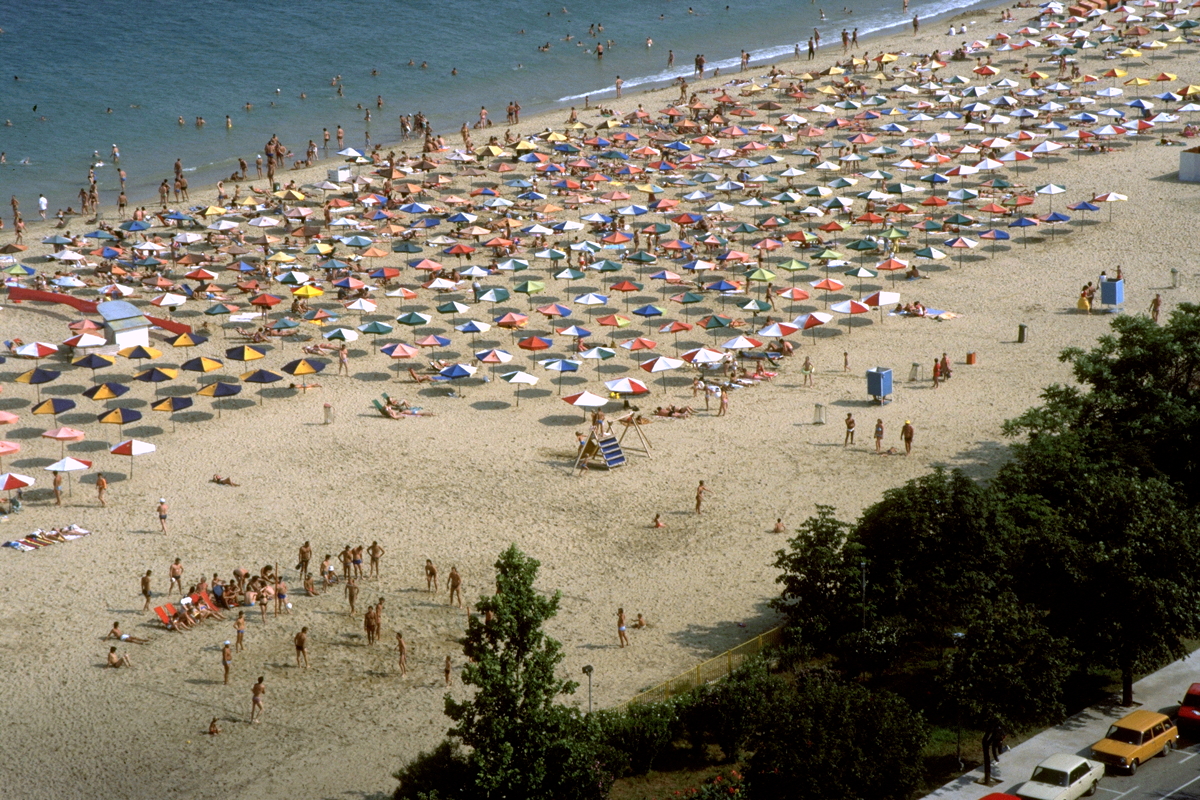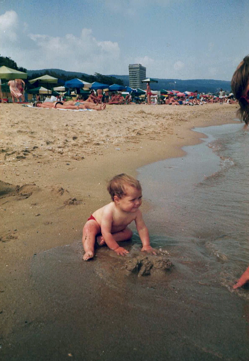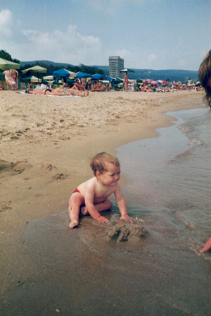 The room was not available until late afternoon, so with the relaxing assurance that we had secured a room, we returned north to Zlatni Pyasatsi for an afternoon at the beach on what was now a hot, sunny day.  All three children (and even their parents!) really enjoyed it, even though the beach was very crowded (which helps explain the shortage of accommodation), and the long lines of closely spaced, regulated beach umbrellas were unlike anything we had ever seen.
