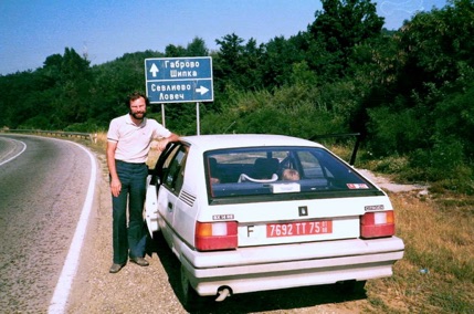 Navigation for our drive west through Bulgaria was a team effort.  All the road signs were in Cyrillic script, but our road map was in Roman script.  Fortunately, I had taught myself Cyrillic script and sounds earlier in the year when I visited the USSR; it was a necessary survival skill in the Soviet Union to read road signs, Metro station signs and names, bus destination signs, and so on.  So, as we approached major intersections with road signs, I would read and sound out the names, and Di would check the map and tell me which way we needed to proceed.  We managed to navigate our way without a single wrong turn.