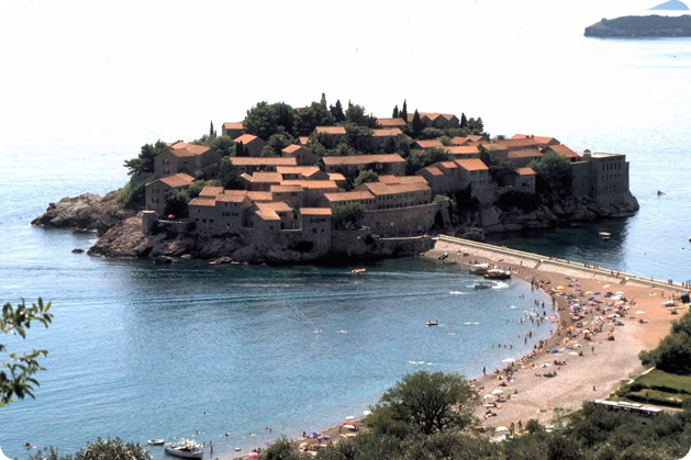 Petrovac had no accommodation available for the night, so we continued driving northwards along the coast.  The beaches looked overcrowded and dirty, although there were some lovely scenic spots, notably the developed tombolo of Sveti Stefan.
