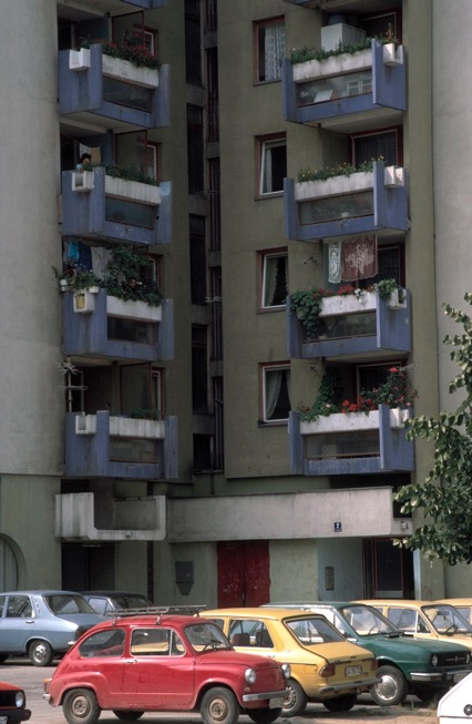 Before leaving Sarajevo, we stopped briefly to photograph some very nice high rise socialist housing blocks near the tramline on Bulevar Meše Selimovića, the main road leading out of Sarajevo towards the west.  (As a footnote, about five years later this road became the scene of fierce fighting during the Bosnian Civil War of 1992-1996 when it was nicknamed Snipers Alley.  Only the bravest or most stupid pedestrians attempted to walk along the footpaths or roadway, ducking for cover behind makeshift barriers as they did so.  Drivers who couldn’t avoid the area drove through at high speed without stopping to avoid snipers’ bullets, and the area’s burnt-out and shot-out car wrecks and barricades became symbols of the tragic siege of Sarajevo).
