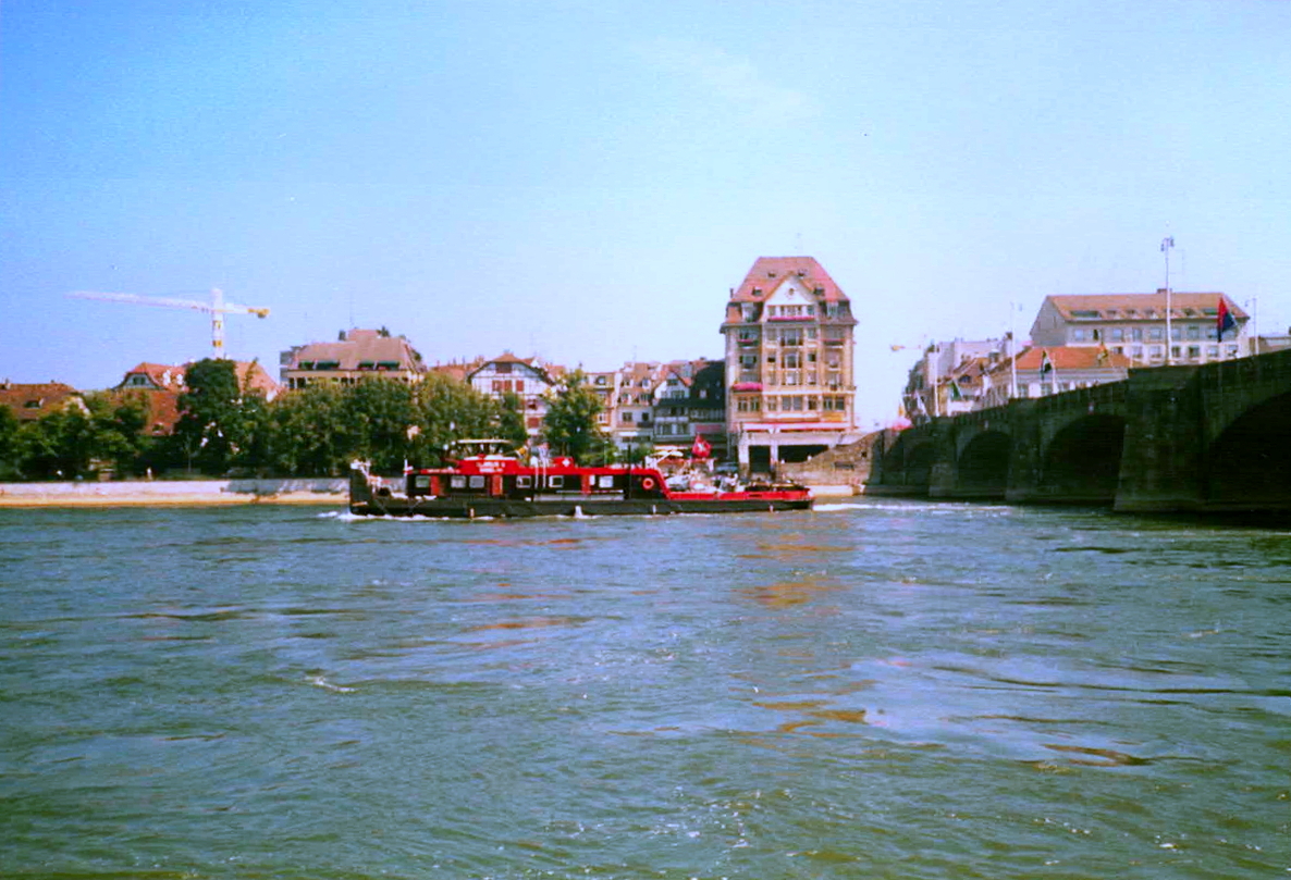 After almost bankrupting ourselves buying a small amount of food for lunch (Switzerland being markedly more expensive than anywhere else we had visited), we strolled down to the Rhine River near the Grand Hotel Les Trois Rois to eat it while admiring the views of the river, the historic Mittlere Brücke (Middle Bridge) and the bustling river traffic.