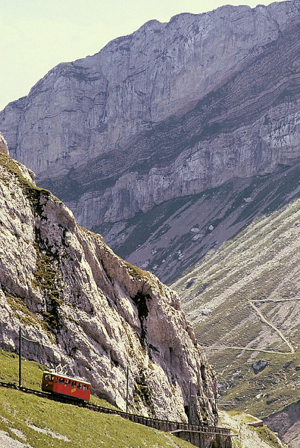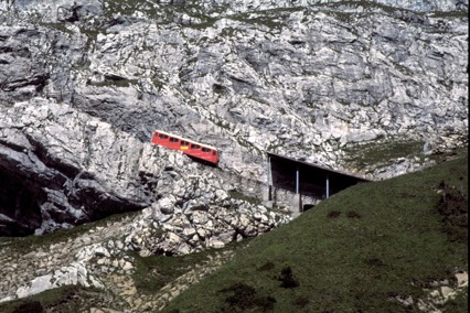 Then it was time for Mount Pilatus.  We returned to Hergiswil and took the rack railway up through the Laub Valley and the village of Ämsigen, a journey which was a totally enjoyable experience in itself.  Upon reaching the summit of Mount Pilatus, we had lunch and then walked to various vantage spots to enjoy the breathtaking views across the peaks and valleys of the Alps, notably including the dramatically situated Klimsenkapelle (Klimsen Chapel) white church building), and across to the city of Lucerne far below.