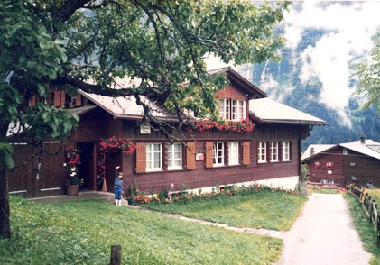 I had been to Grindelwald on my way to the conference in Freiburg in 1984 with three other geographers.  On that trip, we had stayed in a zimmer (room) that we found by chance driving around Grindelwald to find accommodation (as we had not made any reservation).  I was so impressed with the room we had that I resolved that we would stay there as a family on this trip.  This time I had made a reservation, and having been there three years earlier, I had no trouble finding the familiar house in Terrassenweg, a street that runs parallel to the main street through Grindelwald at a higher level that affords great views south and west across the valley to the mountains and glaciers beyond.