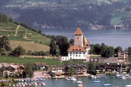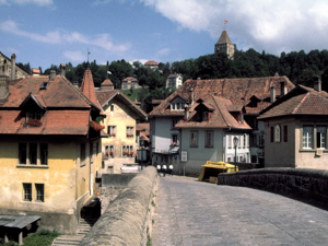 We drove to Interlaken and then followed the southern edge of Thunersee (Lake Thun), stopping briefly at Spiez for some photos of the beautiful Spiez Castle, set in impressive surroundings on the shore of the lake and surrounded by vineyards.  We then continued west through Schwarzenburg, leaving the German-speaking zone of Switzerland and driving into the French-speaking city of Fribourg.  Upon reaching Fribourg, we had lunch by the roadside and then had a brief walk through the old city centre.