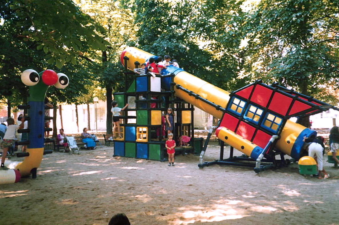 We searched for and found Lyon’s Youth Hostel beside the major expressway in the suburb of Vénissieux.  However, the office was closed until 5:00pm.  Therefore, although it was a risk that the Youth Hostel might already be full, we headed off to the city centre and the Part-Dieu district, a commercial hub dominated by Tour du Crédit Lyonnais skyscraper, as well as spending time at a children’s playground.