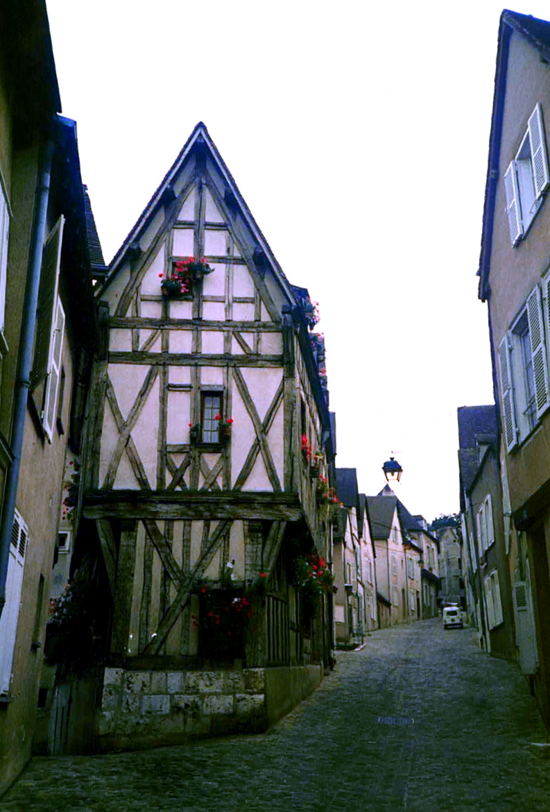 We did make two stops on our way.  The first stop was in Gallardon, a very pretty Medieval village about 20 kilometres north-east of Chartres with streets that were exceedingly narrow even by the standards of the other villages we had seen.  We parked near the town centre to take in the atmosphere of the village, especially enjoying several half-timbered houses, the grandest of which was La Maison du Bois at 5 Rue Porte Mouton.  Right in the centre of the town, the Church of St Peter and St Paul looked interesting, although when we explored it more fully, we found its interior to be almost austere as its exterior.