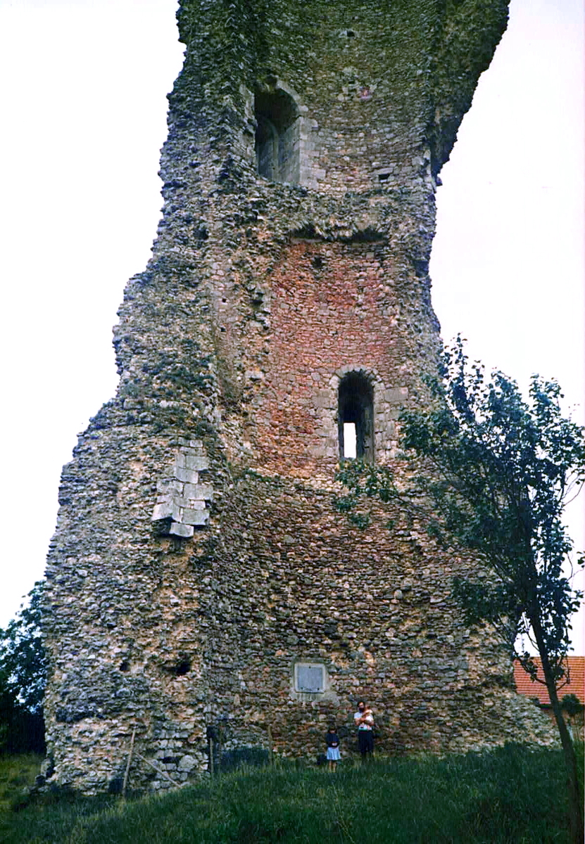 Our final sight/site in Gallardon was the ruined tower known as L’Epaule (The Shoulder).  The remains of the tower are all that is left of a 12th century fortified castle that used to stand there.  Constructed of millstone stones, the tower was used as the “keep”, or lodge for the guards to use as a lookout over the castle’s surrounding area. Although the walls were 4.5 metres thick, the castle was destroyed at some stage during the Anglo-French Hundred Years War (1337 to 1453), and in the period following that destruction, many of the tower’s stones were “mined” by local people to use for other purposes, leaving only the “shoulder” standing today.