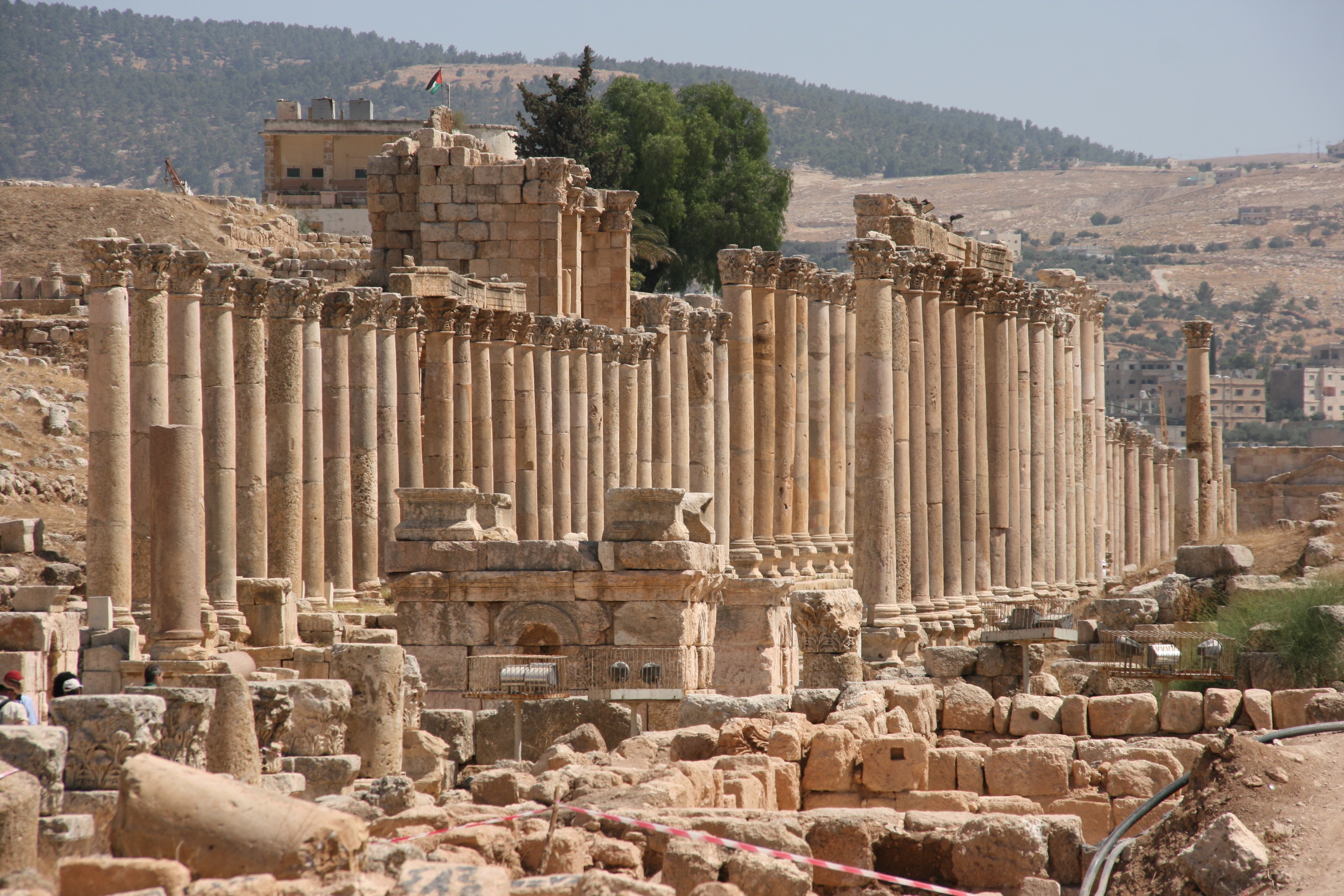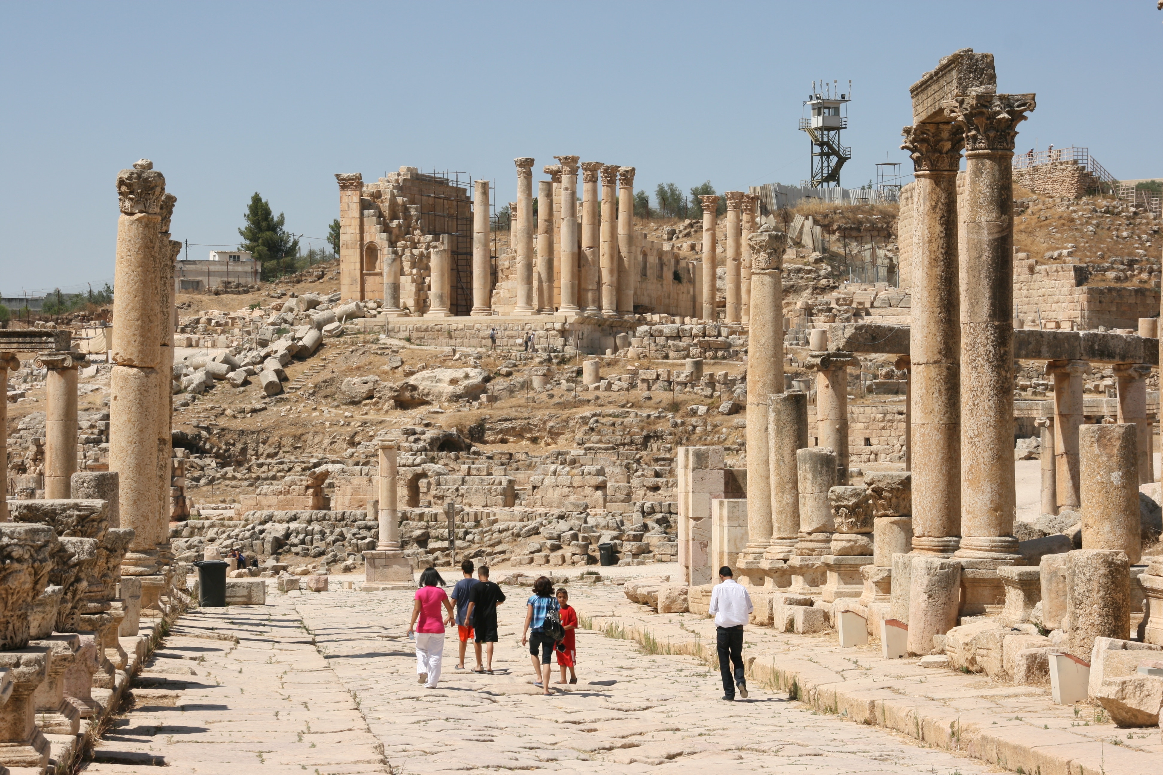 Running to the north of the Forum was the city’s main thoroughfare, the Cardo Maximus, lined with colonnades that were even larger than those surrounding the Oval Plaza. The Cardo Maximus stretched for 800 metres from the Forum to the North Gate of the city. The thoroughfare was paved with its original stones, still showing in some places the grooves made by chariots in Roman times.