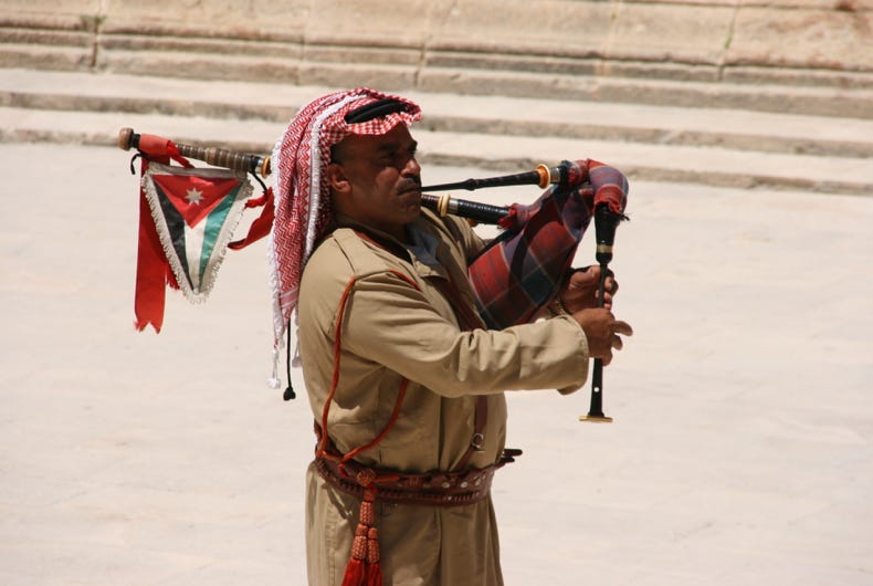 Apparently today was the birthday of Jordan’s crown prince (who, incidentally, is a student at King’s Academy where the previous three days workshops were held). This probably explains the late afternoon flypasts of air force helicopters over downtown Amman and the formation of F-16 jet fighters that also screamed overhead, not to mention the scattered displays of fireworks in the early evening.