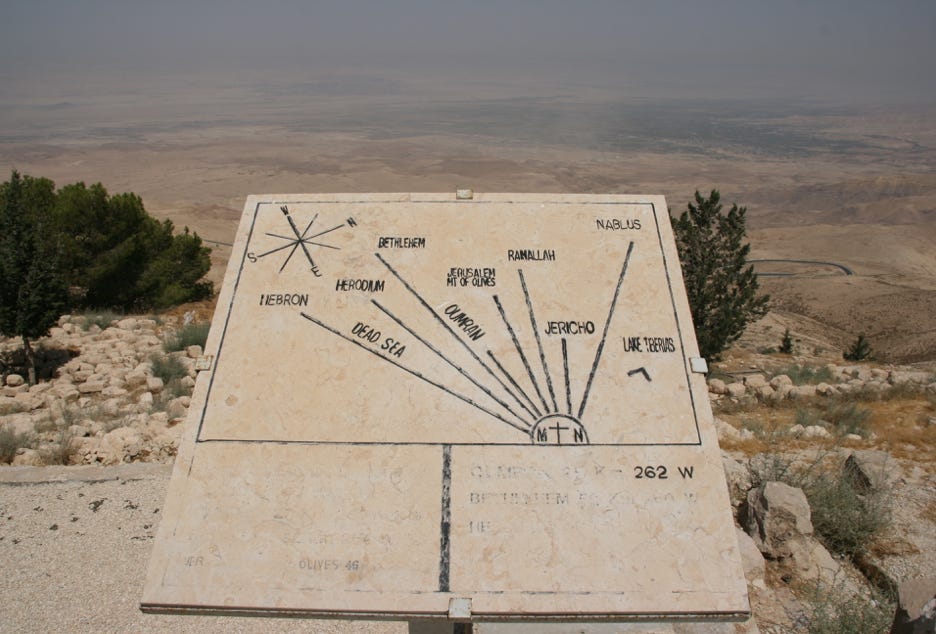 After successfully navigating our way out of Amman, we headed to the south-west, and after passing through Madaba (where the workshop was held just a few days earlier), we stopped at Mount Nebo, about 10 kilometres further on. Mount Nebo is the place where Moses and the Israelites first saw The Promised Land towards the end of their escape from captivity in Egypt. Having seen The Promised Land (Israel), Moses never made it there as he died on Mount Nebo shortly after arriving.