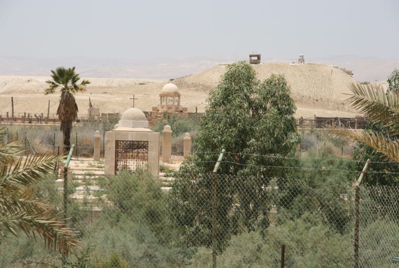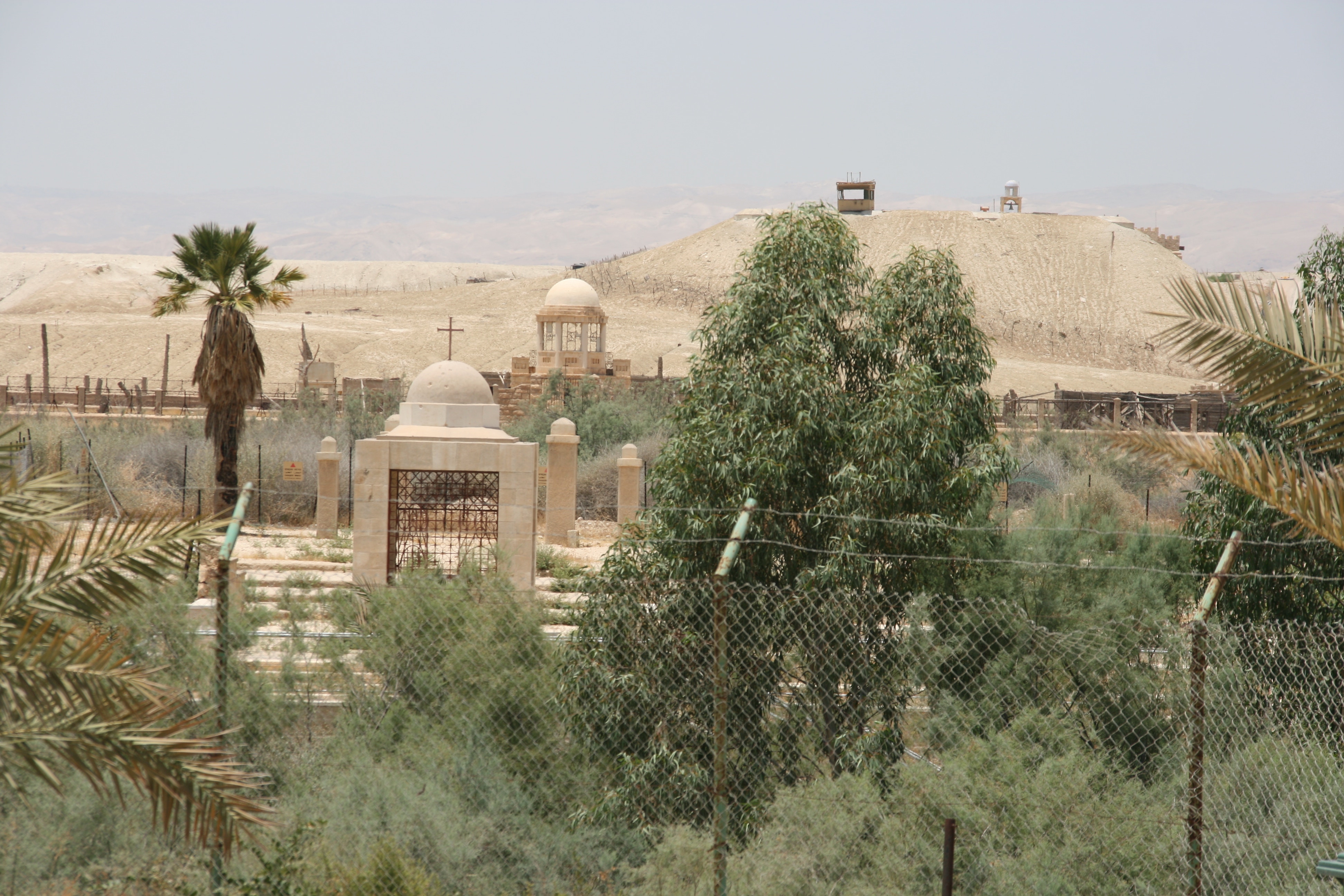 Our second stop was about half an hour’s drive away. Bethany-Beyond-the-Jordan, or as it is known in Arabic, Al-Maghtas, is the site on the River Jordan where Jesus was baptised by John the Baptist, and just a short distance (about a kilometre) from the small hill where the prophet Elijah was said to have ascended into heaven on a chariot. Located in a military controlled zone on the Israeli-Jordanian border, this was a closed area until 1994 when an agreement was reached to open the area as part of the peace accord. Even now, we were not permitted to drive all the way to the baptism site, but we had to travel in special trucks under army supervision.