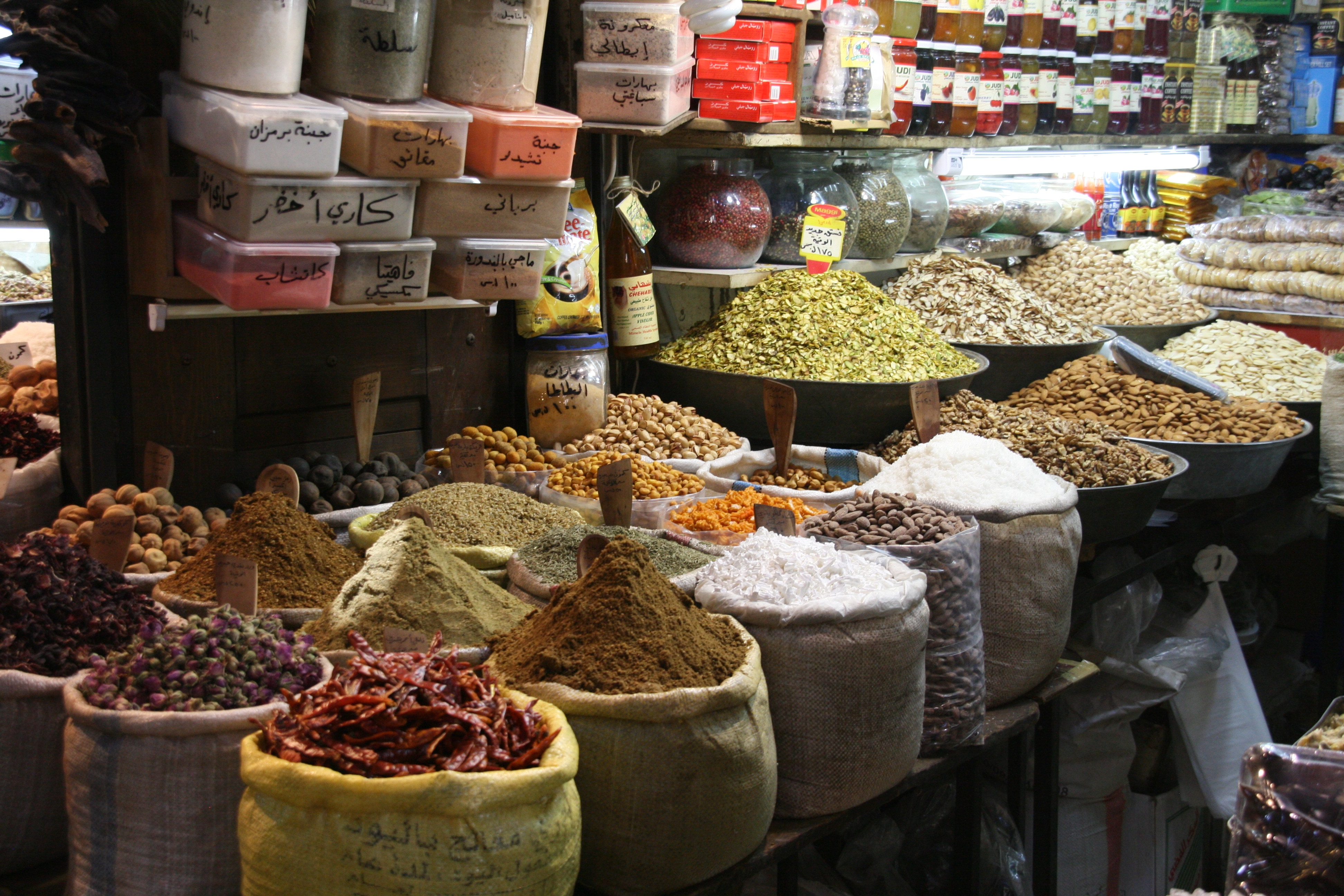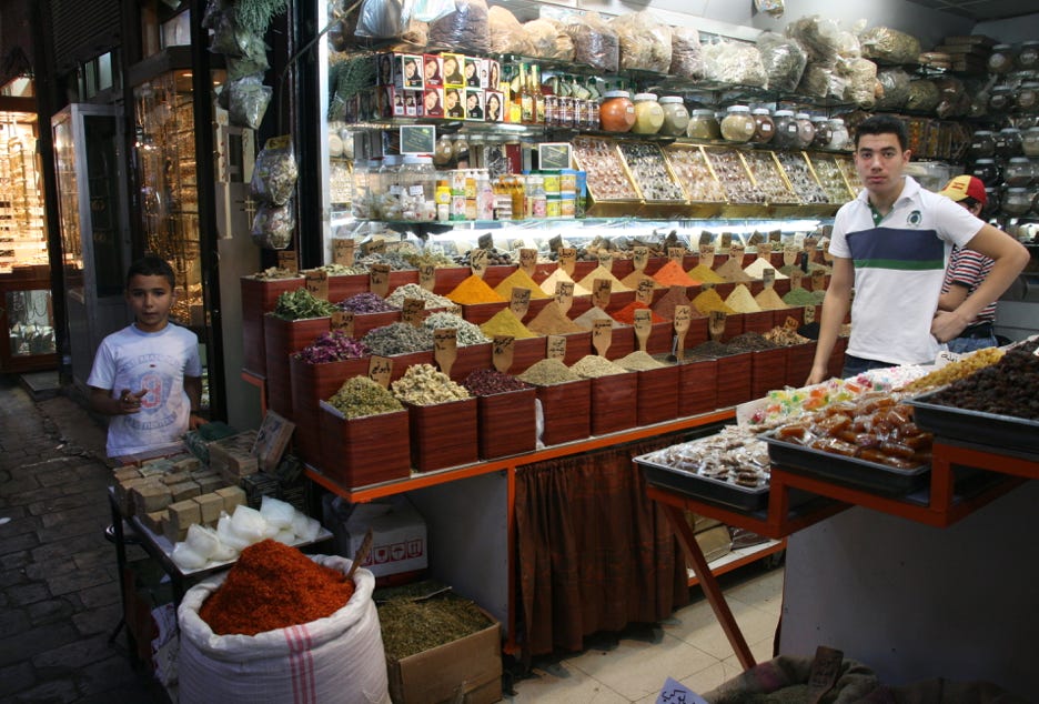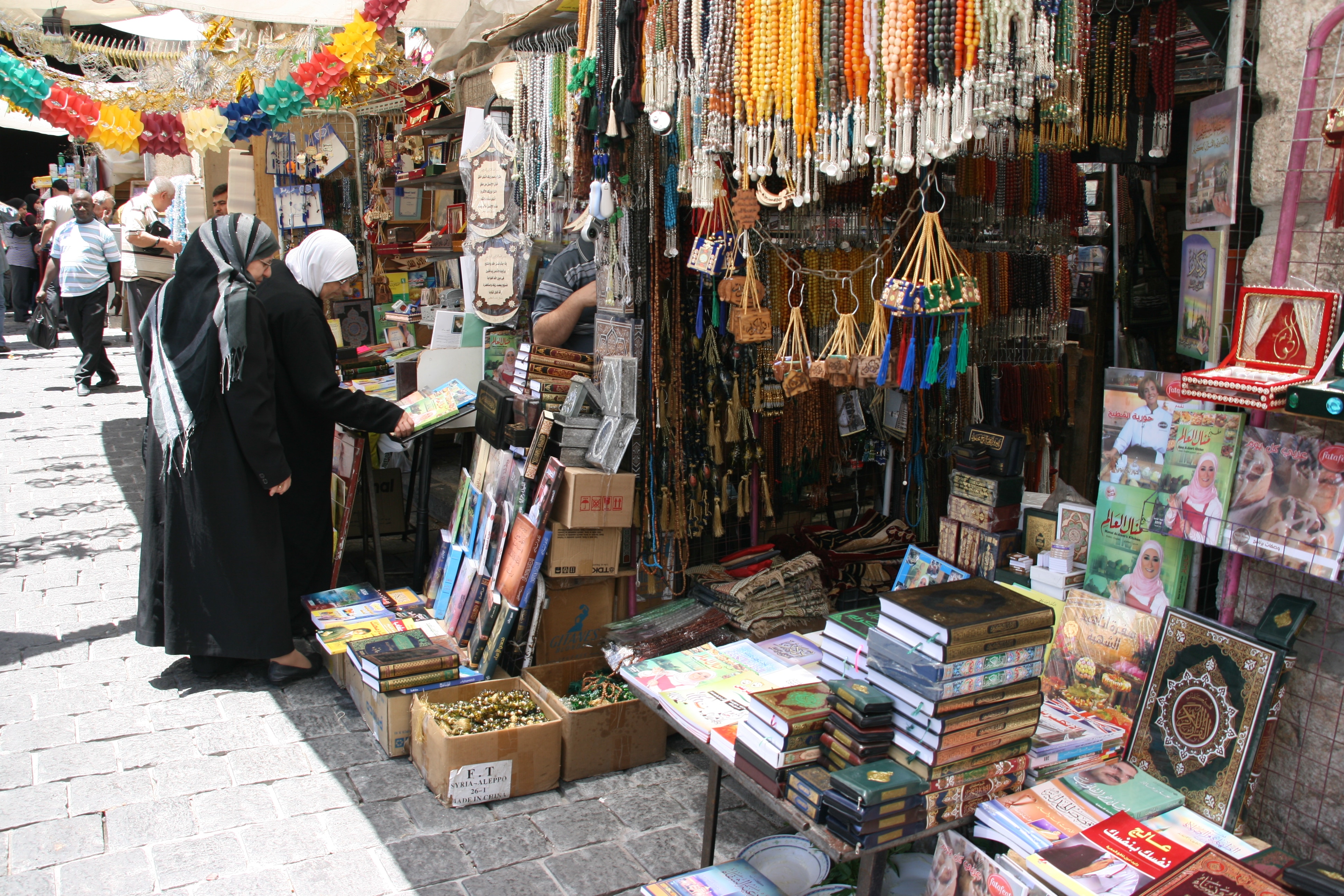 The souq was an extensive network of alleyways that contained colourful little shops selling many types of goods to a broad cross-section of Syria’s diverse population. The two photos below, and the one above to the right, give a small idea of the vast range of interesting things to be seen.