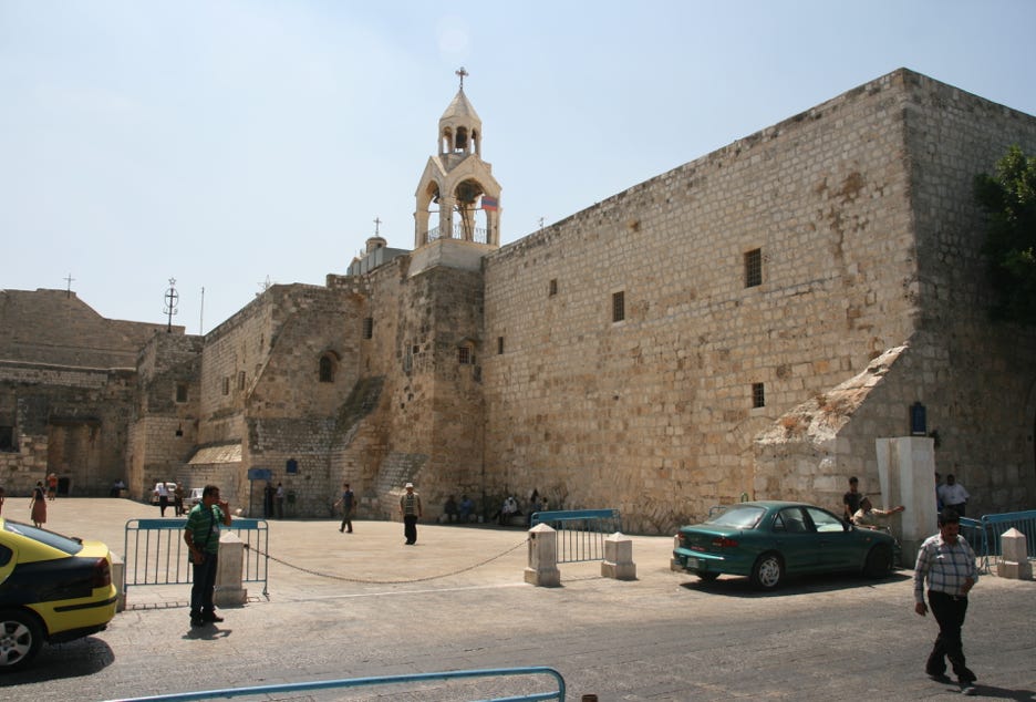 Over to the eastern side of Manger Square was the Church of the Nativity, originally constructed in 326 AD and claiming to be the oldest continually functioning Christian church in the world. The present building was largely reconstructed by the Crusaders in the 12th century and is believed to have been built on the site of the birth of Christ, the main altar being directly above a small grotto which marks the birthplace.