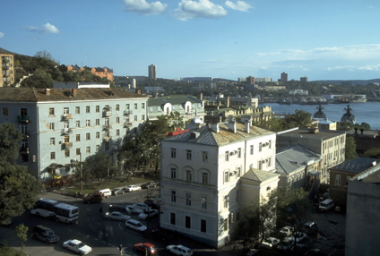 We finally left the airport at 4:30pm and began the 42-kilometre trip into Vladivostok. AusTrade had arranged with their local agent to have a minibus, so this made the trip very simple and easy. My initial impression of the countryside around Vladivostok is that it is generally a bit run down and economically stagnant, although I guess nowhere looks its most vibrant on a grey, wet Sunday afternoon. The only hint that I am in the Far East is the large number of Japanese cars on the roads (in contrast with Moscow where most cars are Russian or from other parts of Europe, especially Germany). Most of the Japanese cars seem to be second hand because they have their steering wheels on the right-hand side (the same as Australia - and Japan) even though the Russians drive on the opposite side of the road to us.
