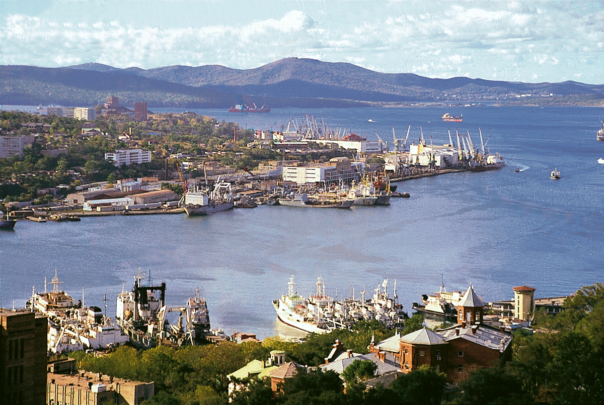 In fact, my optimism was rewarded, and by 8:45 the clouds were parting and a low orange sun was illuminating the lovely old buildings in the city centre. The main area I was interested in exploring was the area around the railway station, which is the eastern end of the Trans-Siberian Railway line. The railway terminus is a gorgeous old building, recently renovated, and a delight to see. Across the road remains a huge statue of Lenin, perhaps prophetically pointing across the water in the direction of Japan, which is the source of most of the foreign investment coming into Vladivostok at the moment.
