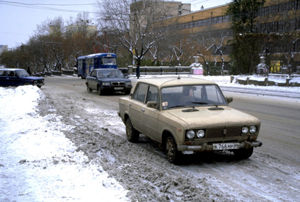 The trip from the hotel to the hotel, about 15 km, was handled by hiring several Volga taxis, a great experience. The countryside looked beautiful under the freshly fallen, and still falling, snow. Our hotel is quite new, a stark contrast to the very basic Soviet-era hotels where we stayed in Novosibirsk and Khabarovsk. This one, the Premier Hotel at 23 Krasnoarmeyskaya Street, has large rooms that are tastefully decorated, but sadly still not very efficient international phone connections for e-mail!